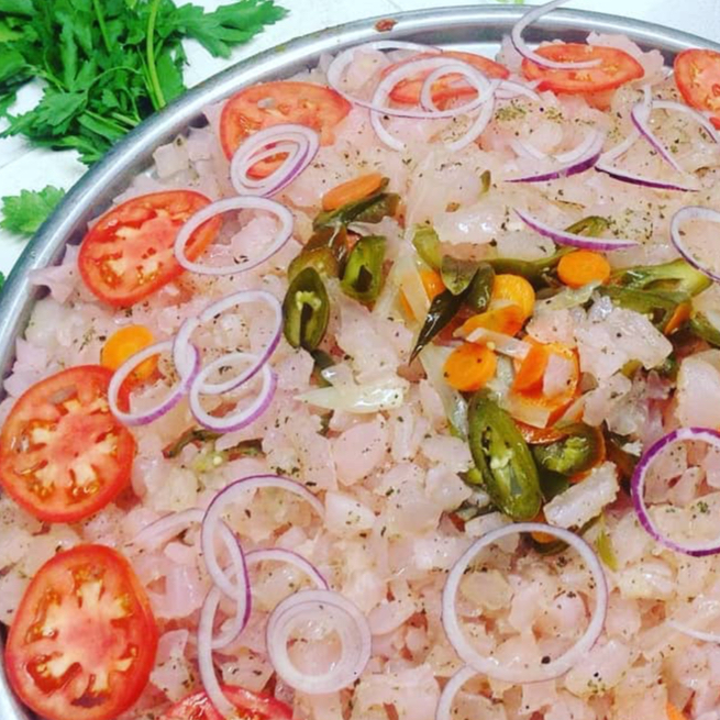 Aguacate, jitomate, papalo, cebolla, picante, milanesa, carne enchilada, queso y quesillo, pata de res, jamón y salchicha.