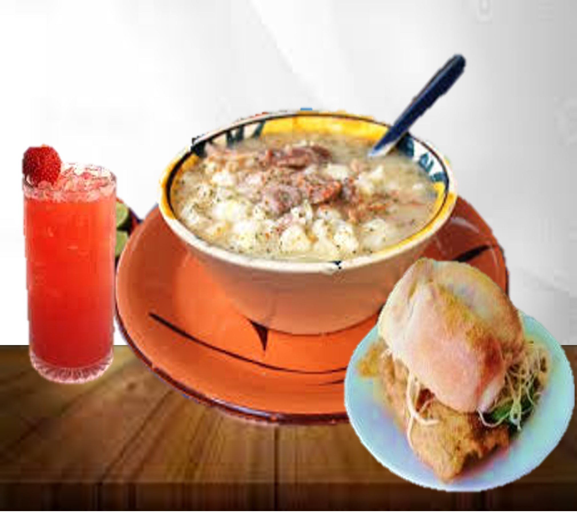 1/2 litro de Pozole*1 + Torta de Milanesa.*1 + Agua de Frutas Naturales del Día (1/2 Litro)*1