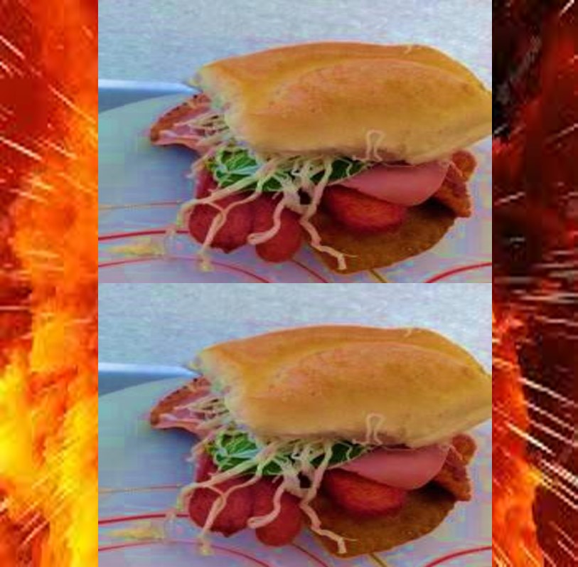 Milanesa jamón salchicha y carne enchilada.