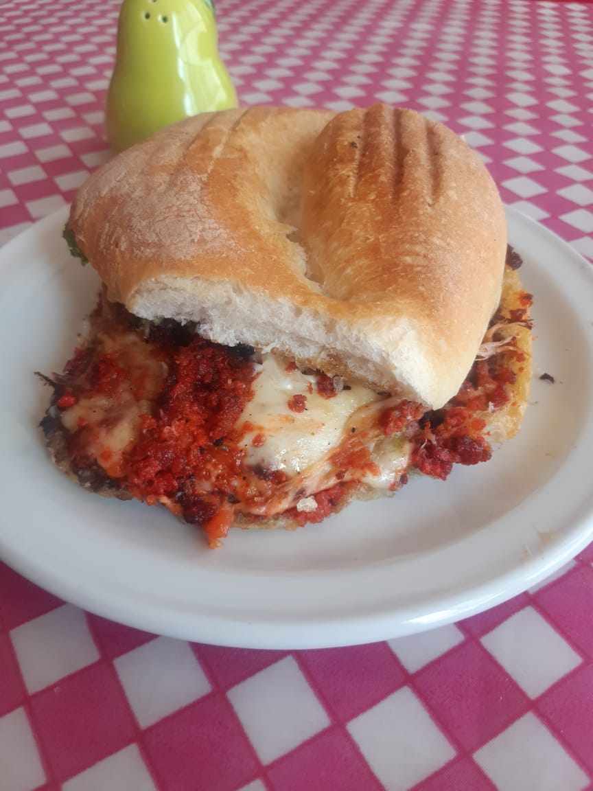 milanesa choquizo quesillo aguacate cebolla y papalo