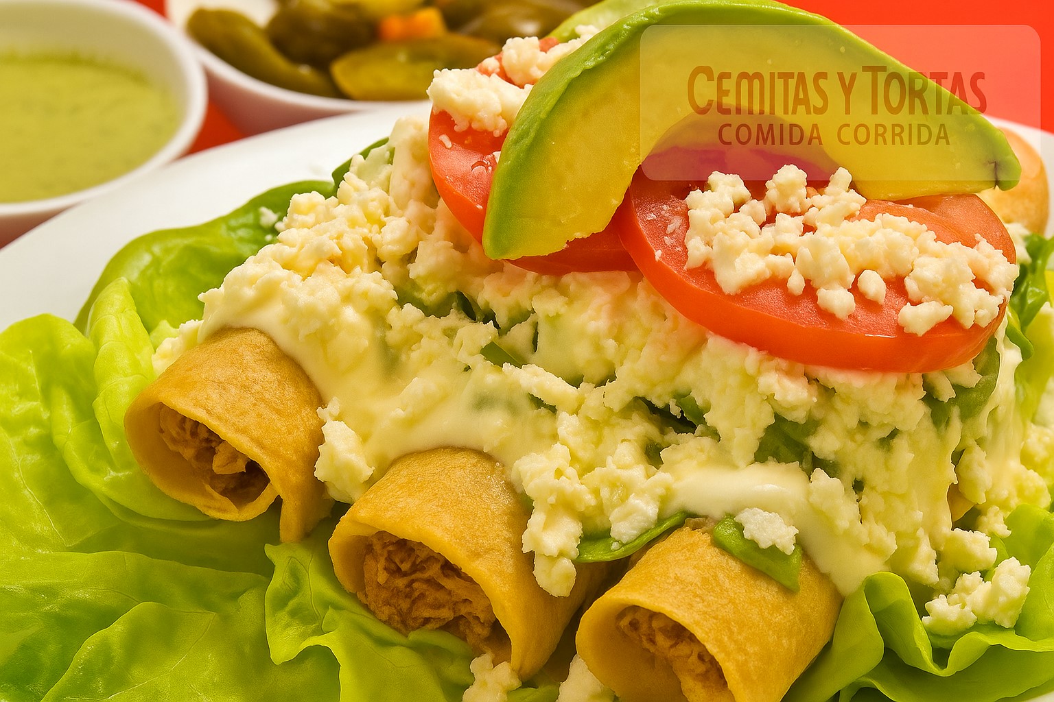 3 Tacos Dorados*1 + Incluye: crema, queso, lechuga y Salsa a elegir*1