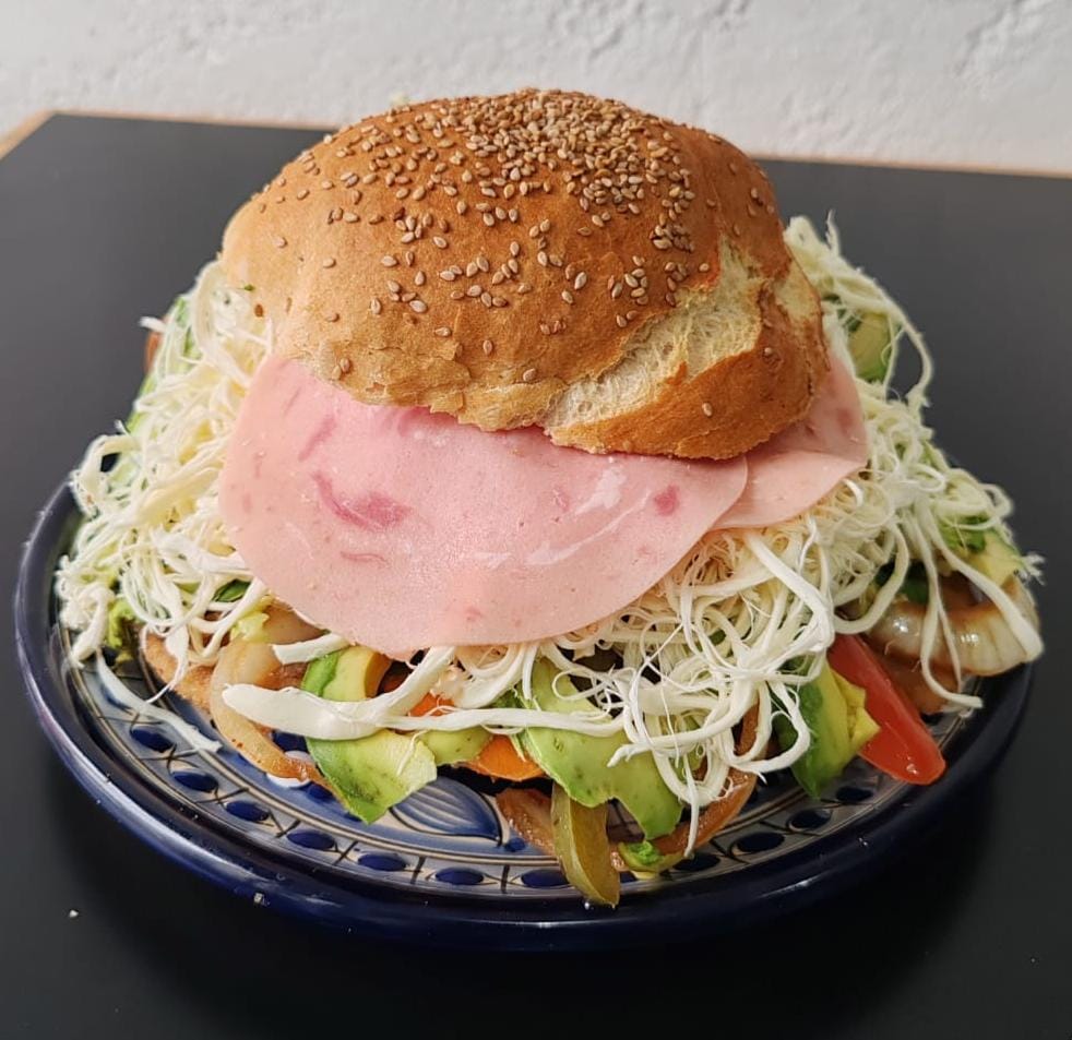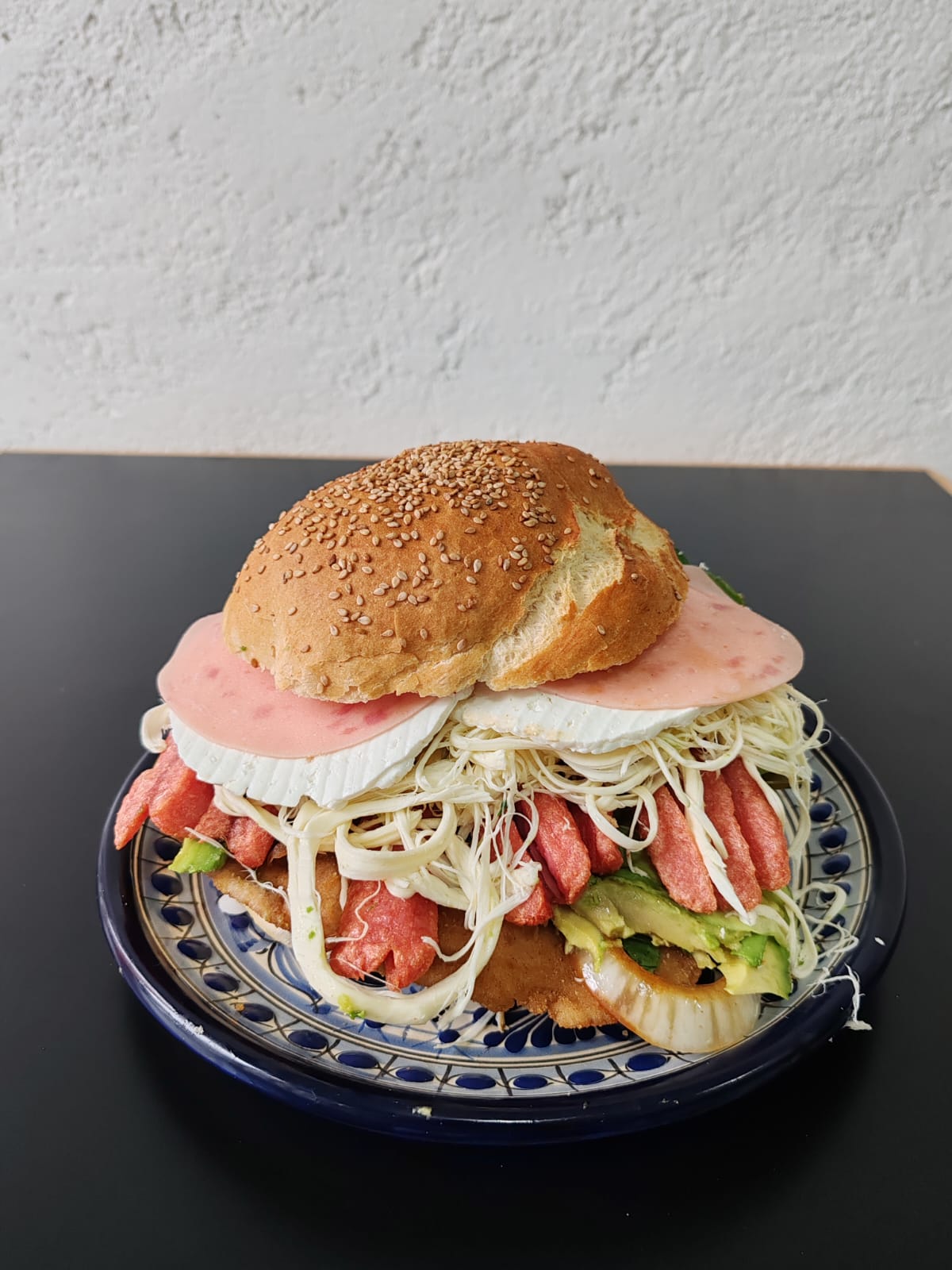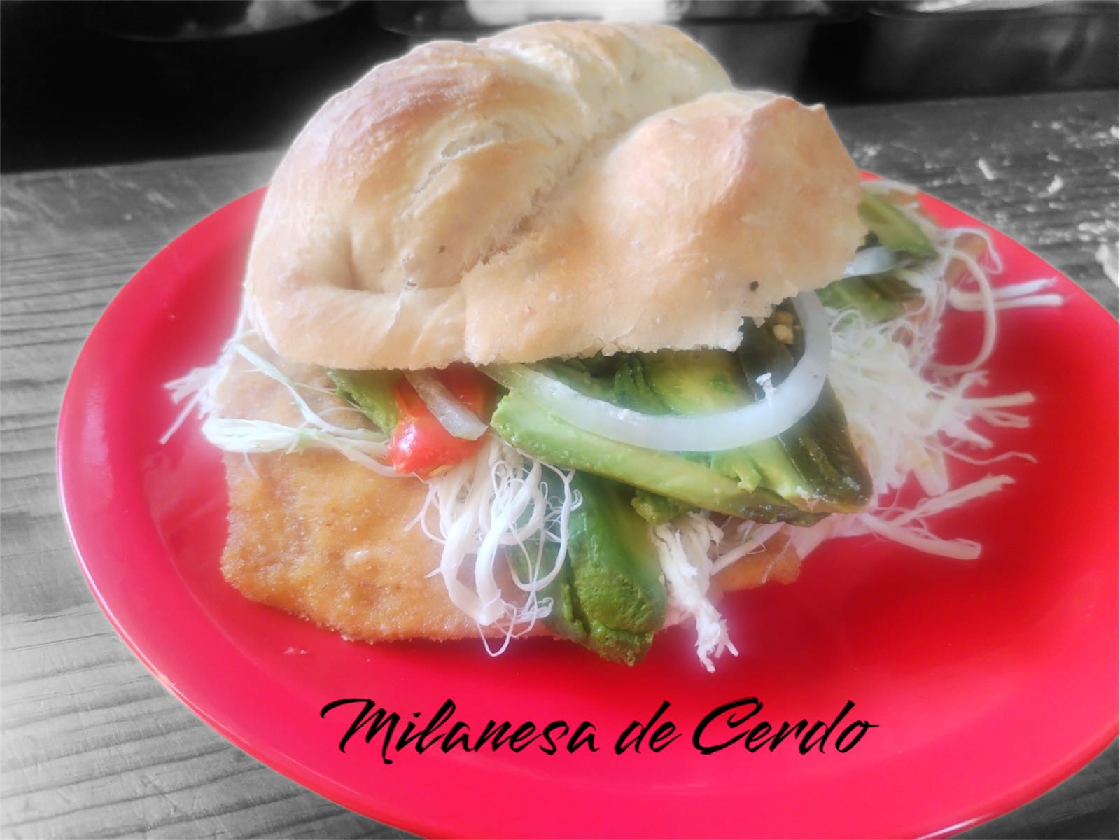 Cemita acompañada de milanesa jamón huevo con jamón con carne a tu elección enchilada oh milanesa con picante a tu gusto