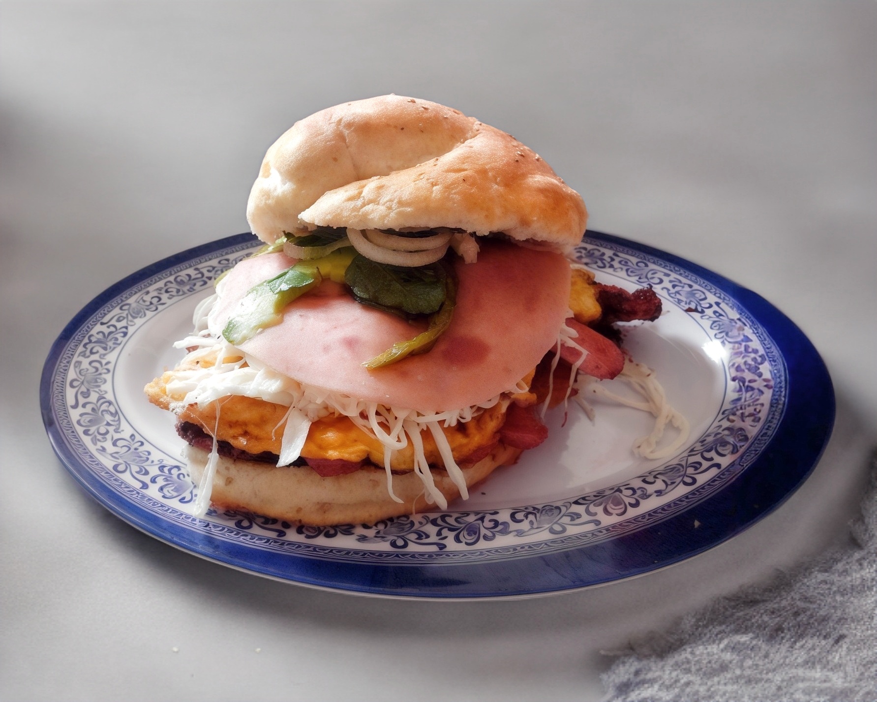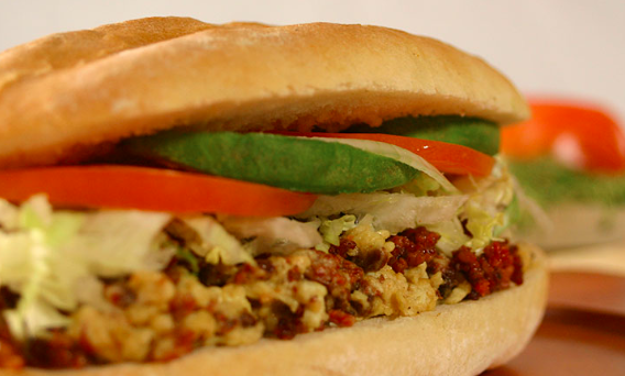 Jamón, quesillo, aguacate y rajas o chipotle. Mayonesa frijoles