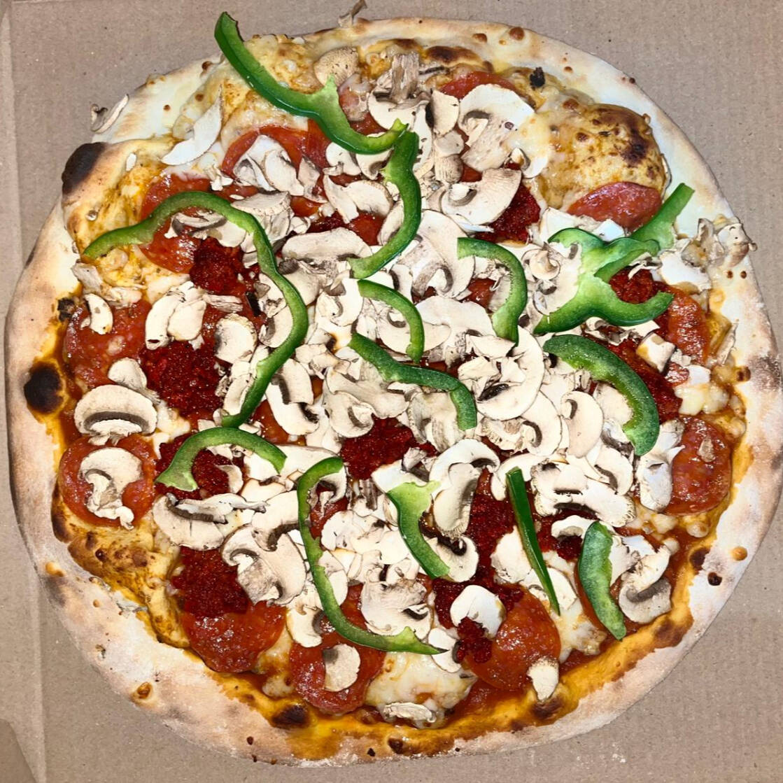 Peperoni, Champiñón, Chorizo y Pimiento.