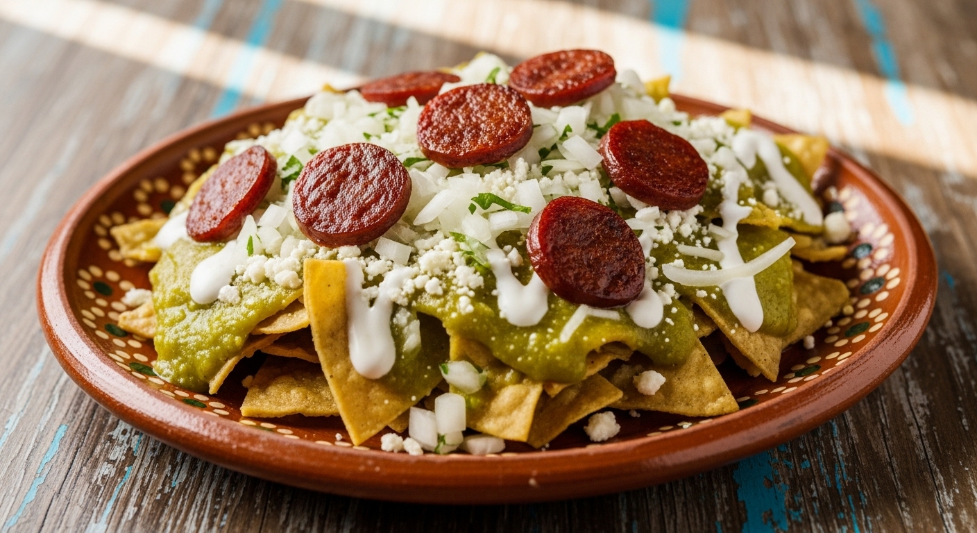 Chilaquiles tradicionales con chorizo + agua 😋