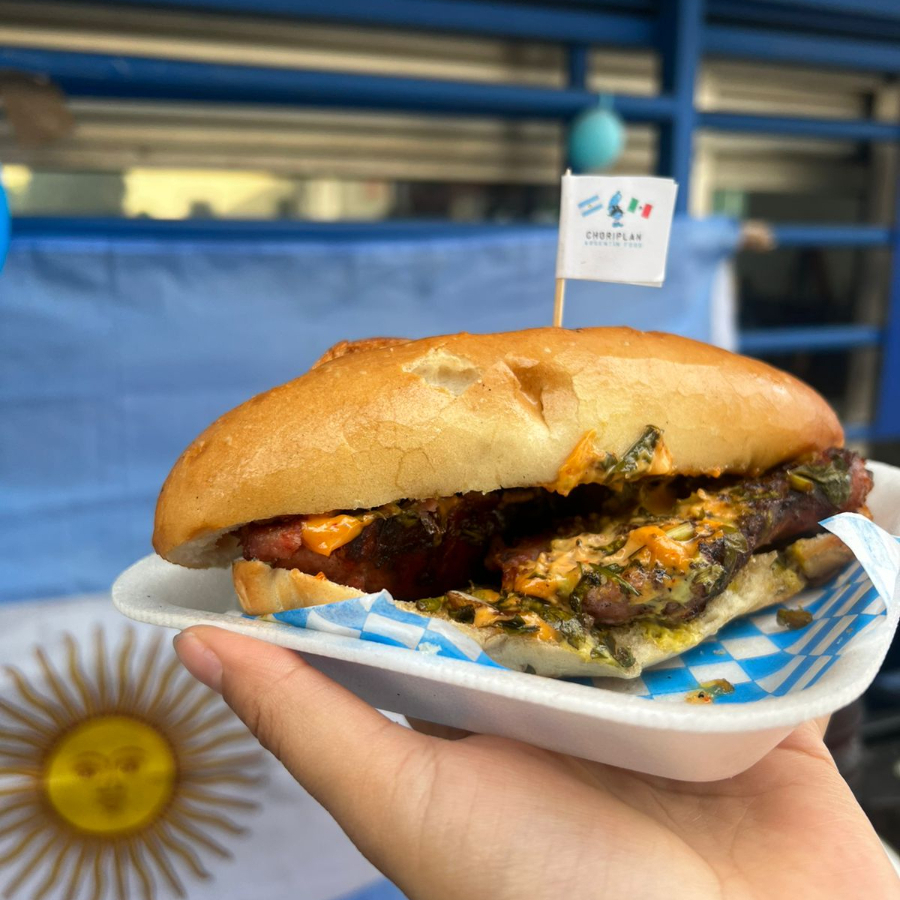 Pan artesanal bañado en mantequilla para un toque crujiente, chorizo argentino asado al carbón, nuestra salsa original de chimichurrí y un toque de mayonesa de chipotle y habanero a los que prefieran más sabor!