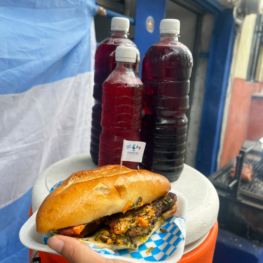 Nuestro choripán Pan artesanal lleva el chorizo argentino bien doradito, queso fundido irresistible y arrachera jugosa a la parrilla. Una combinación deliciosa pero poderosa que te hace decir “¡esto está buenísimo!”. Perfecto para cuando querés comer algo sabroso, rápido y con ese toque callejero argentino que conquista a todos. 📍Hecho al momento, con ingredientes de calidad y mucha pasión.