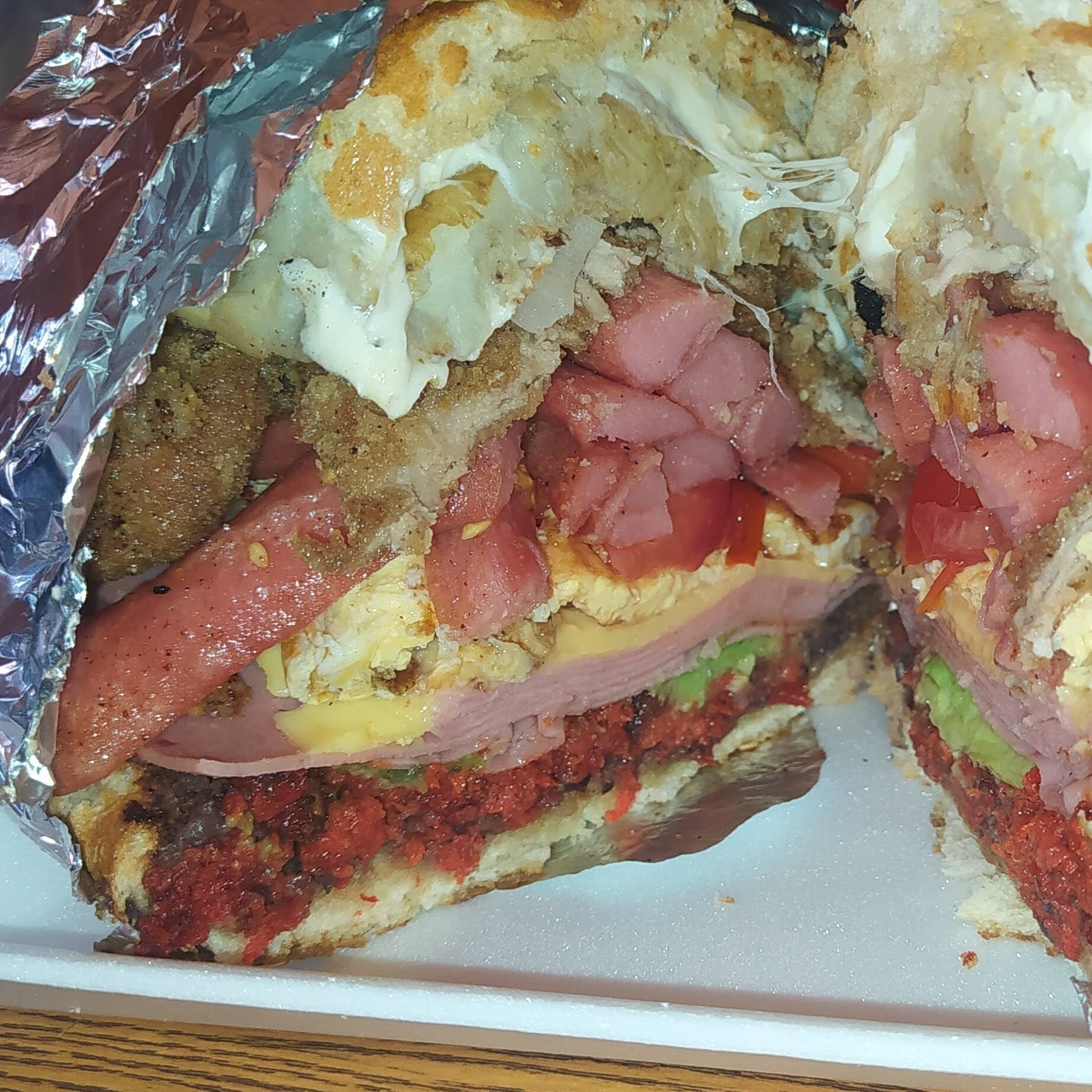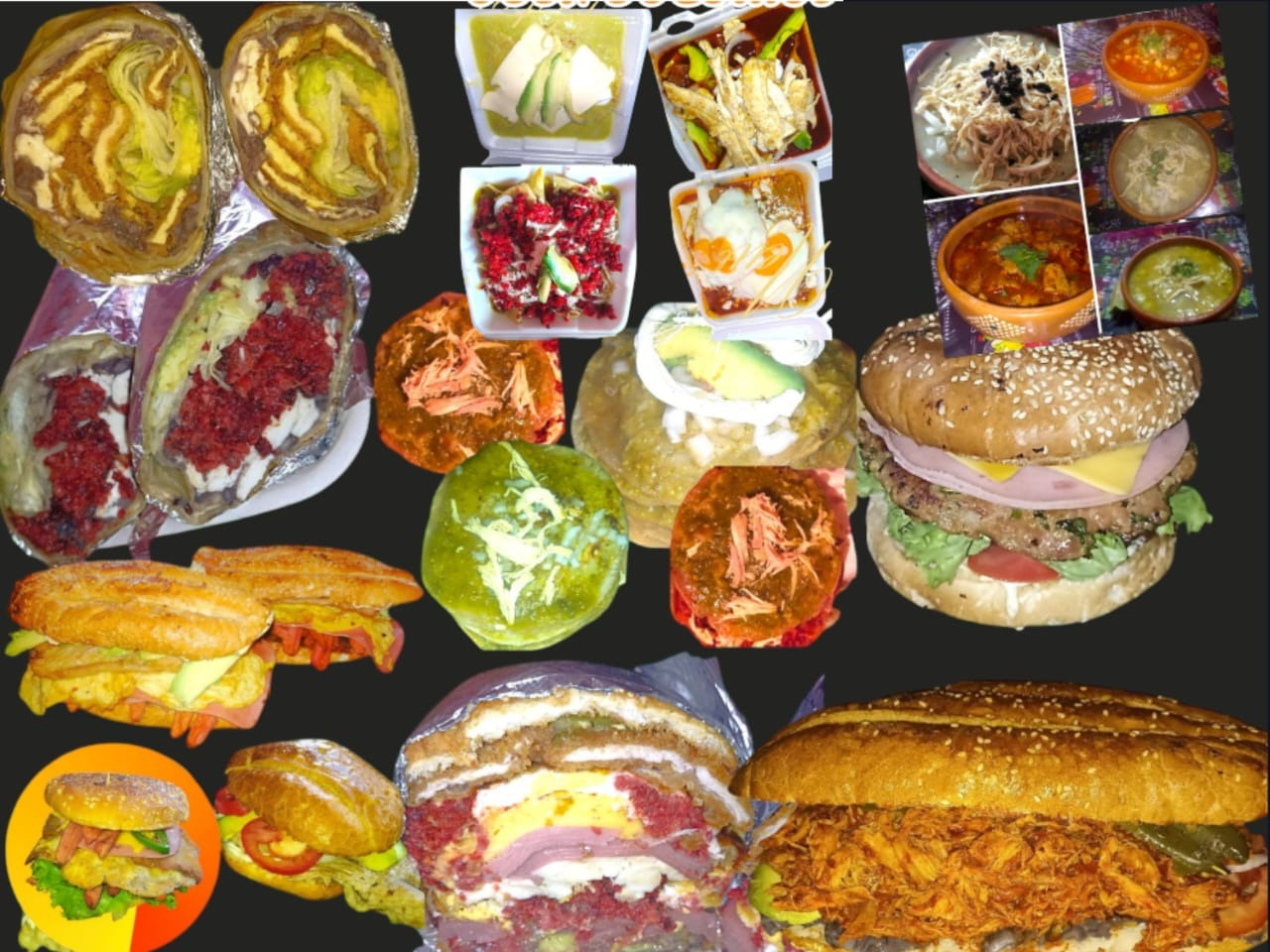 4 tapas de pan, jamón, queso americano, quesillo HUEVO manchego, lechuga, jitomate, aguacate, cebolla, rajas fritas o chipotle a elegir