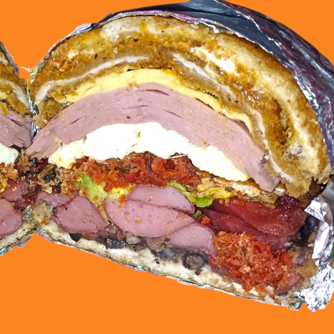 Milanesa, salchicha, quesillo, jamón, huevo, queso americano, chorizo, jitomate, aguacate, frijoles y cebolla:rajas o chipotle. A elección