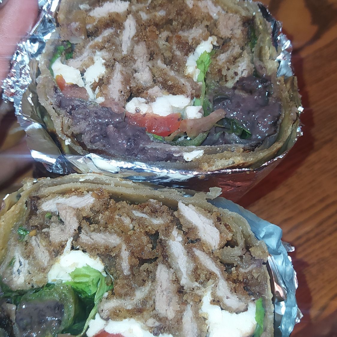 Tortilla de harina con: milanesa de puerco, manchego, lechuga ,cebolla , aguacate, frijoles, rajas o salsa.