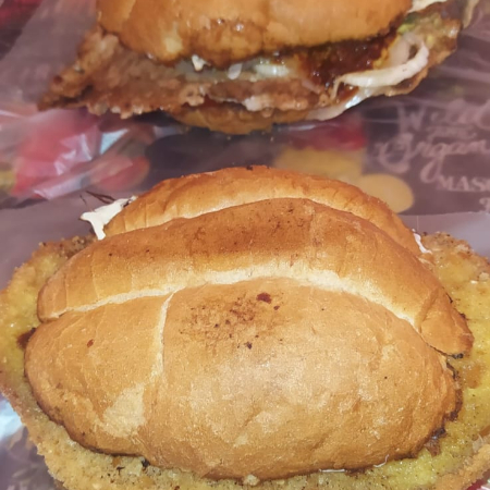 HAMBURGUESA DE PECHUGA EMPANIZADA+CARNE MIXTA