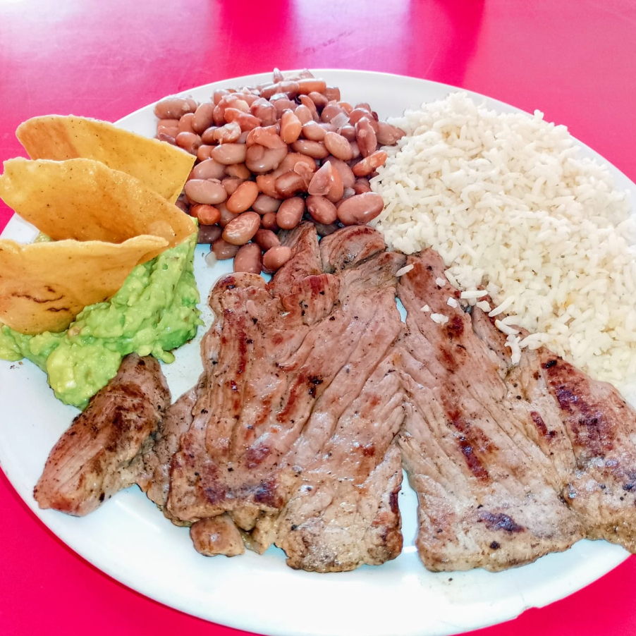200 gramos de arrachera guacamole arroz frijoles y 2 tortillas