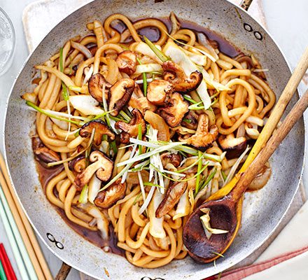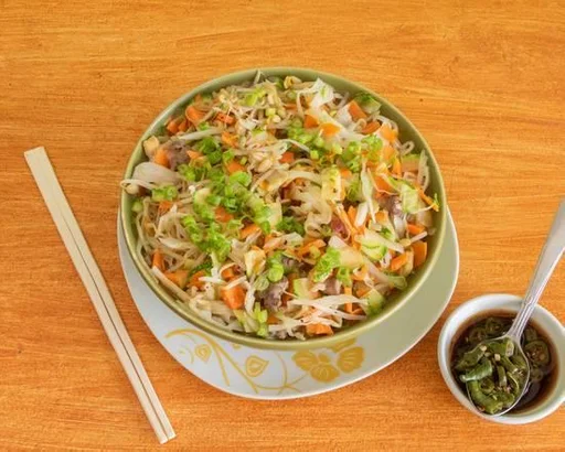 TALLARINES CON CARNE Y VERDURAS FRITAS EN SALSA TONKATSU