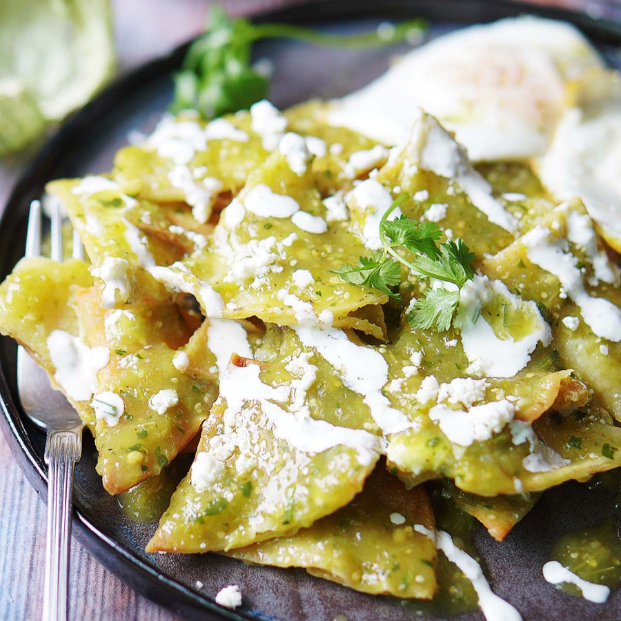 Chilaquiles Verdes o Rojos, Acompañados de Huevo o Pollo, Incluye Café de olla y Fruta del día