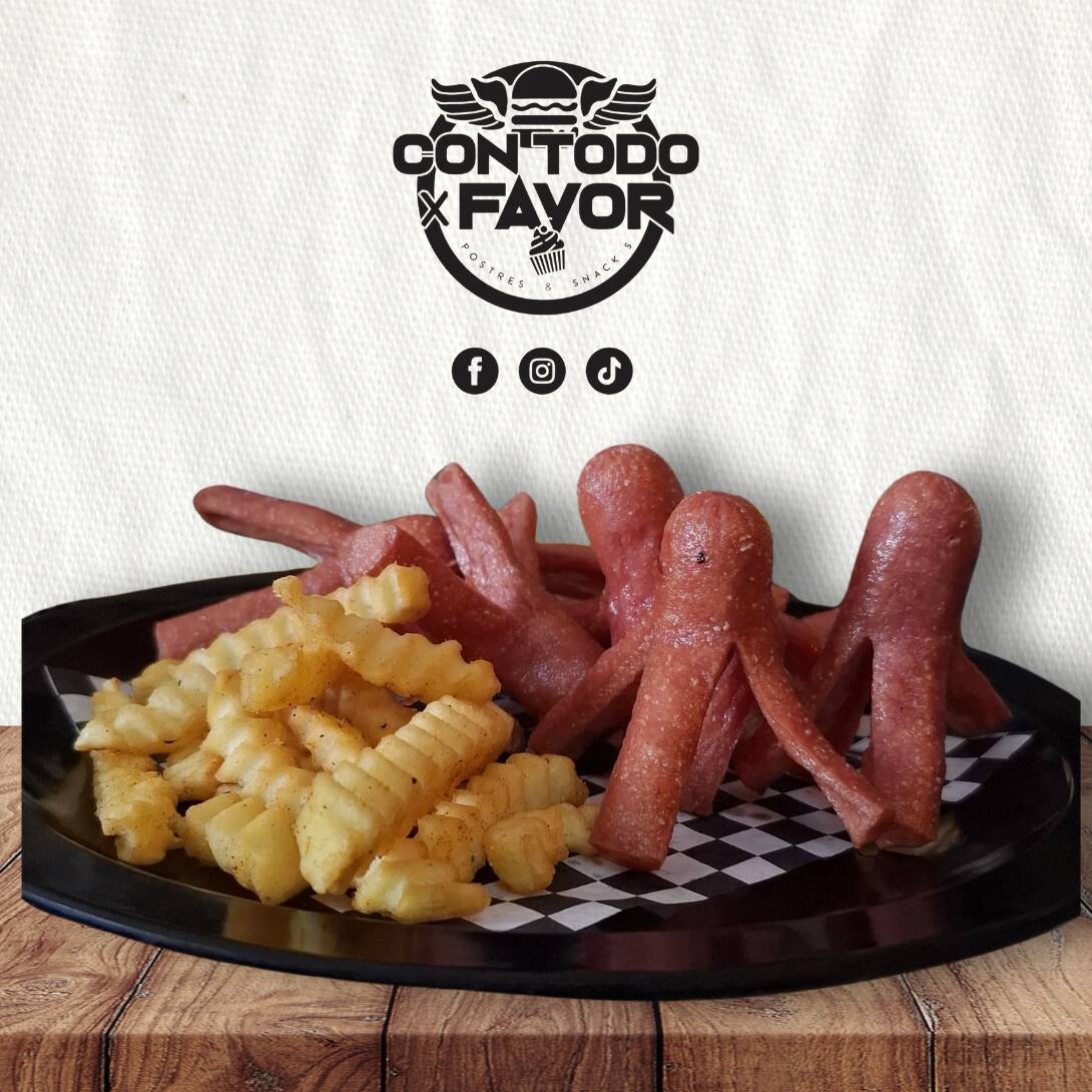 8 Pulpos de salchicha con porción de papas