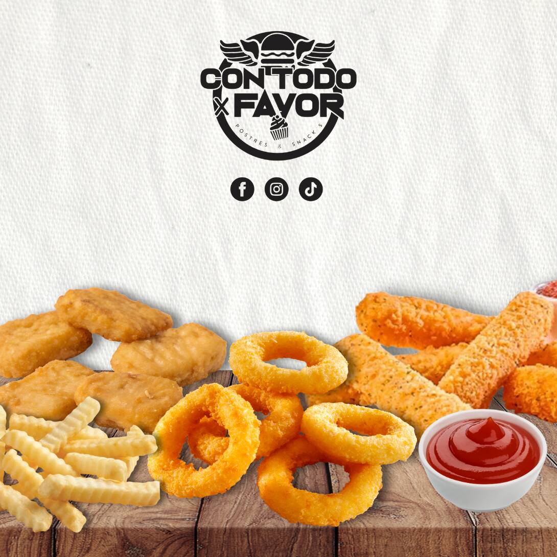 5 dedos de queso + 5 aros de cebolla + 5 nuggets + porción de papas