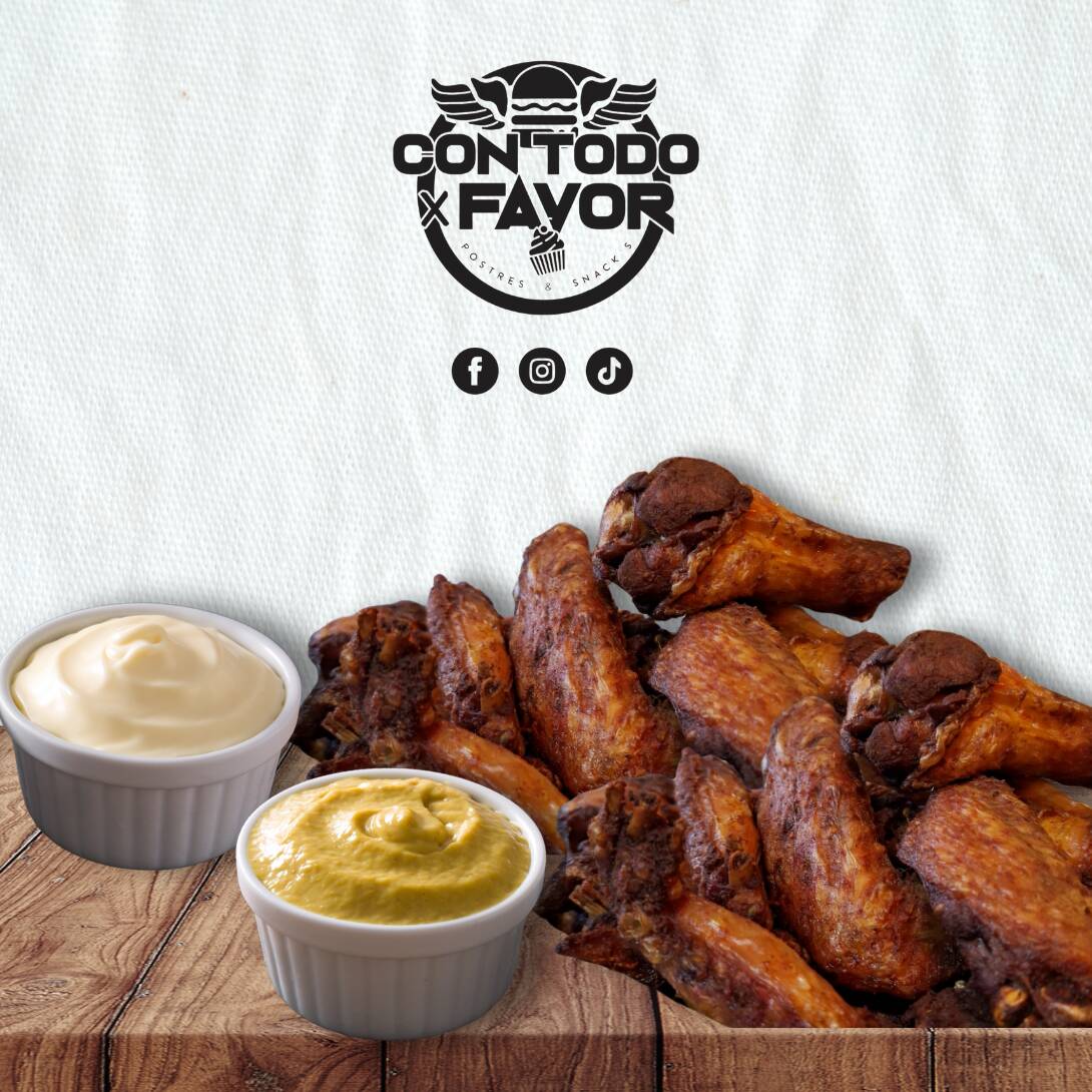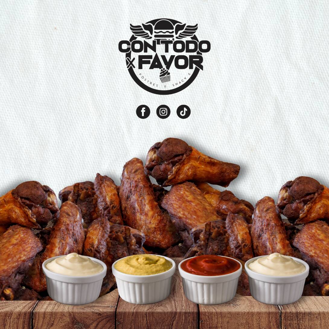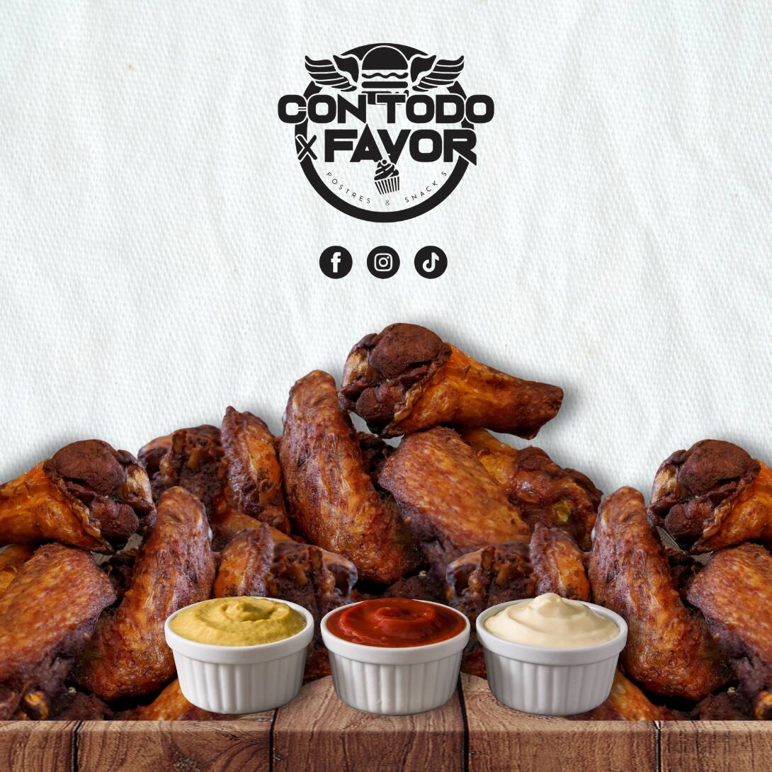 5 alitas + 5 nuggets + 100gr. de palomitas de pollo + 100gr. de boneless + porción de papas