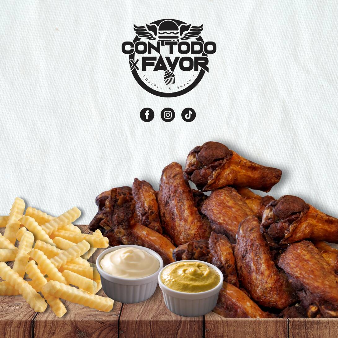 12 piezas de alitas con porción de papas a la francesa