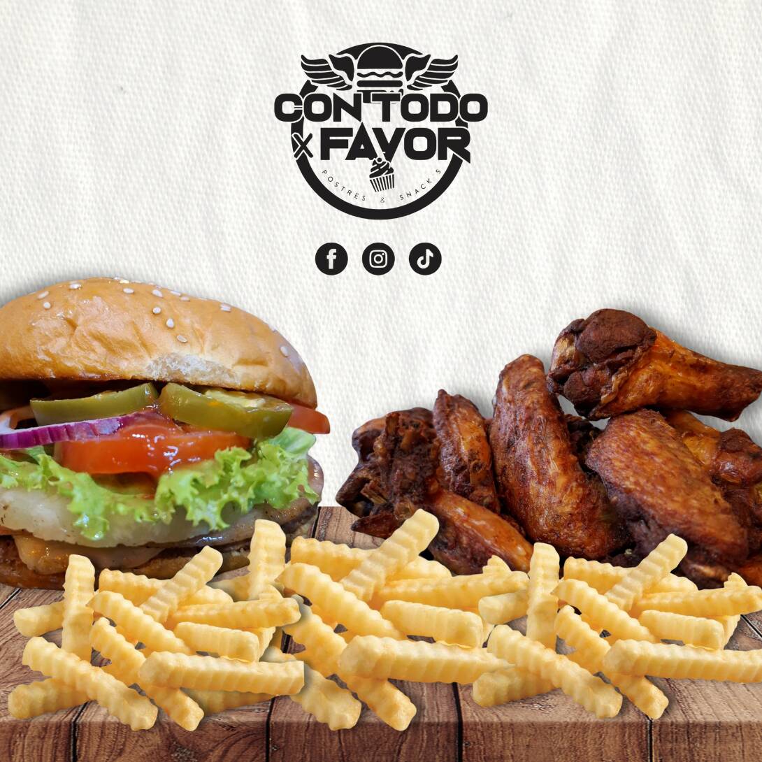 1 Burger Hawai + 1 Orden de Papas + 6pz de Alitas
