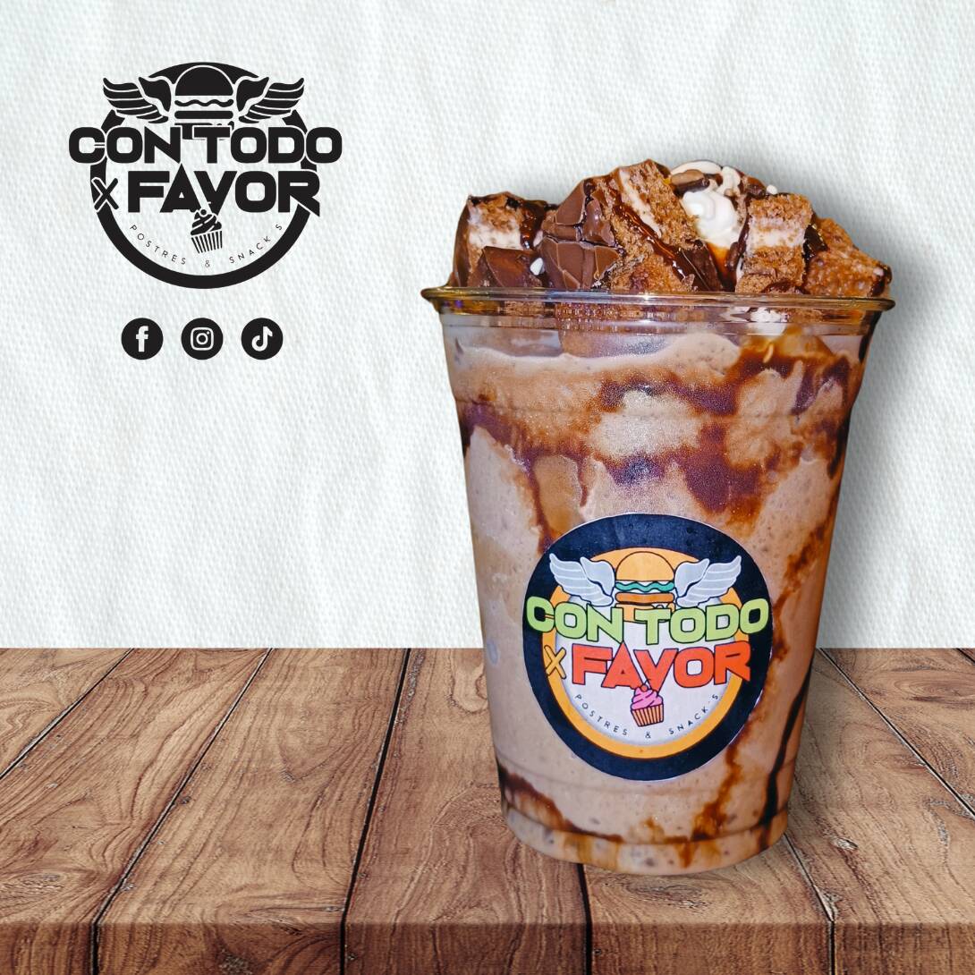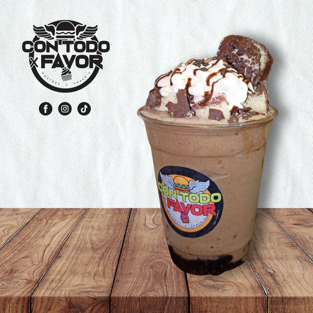 Frappe sabor chocolate, gansito, crema batida y granillo