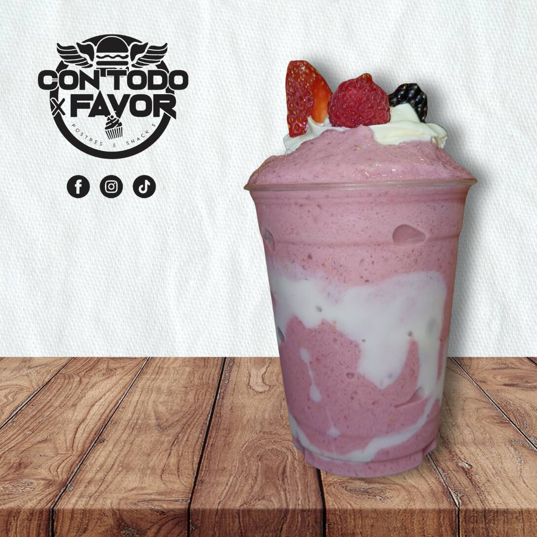 Frappe sabor frutos rojos con crema batida y granillo