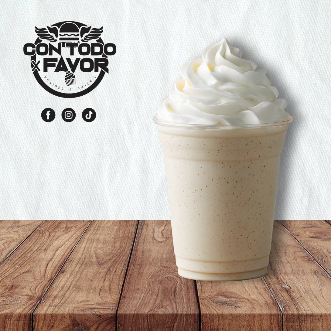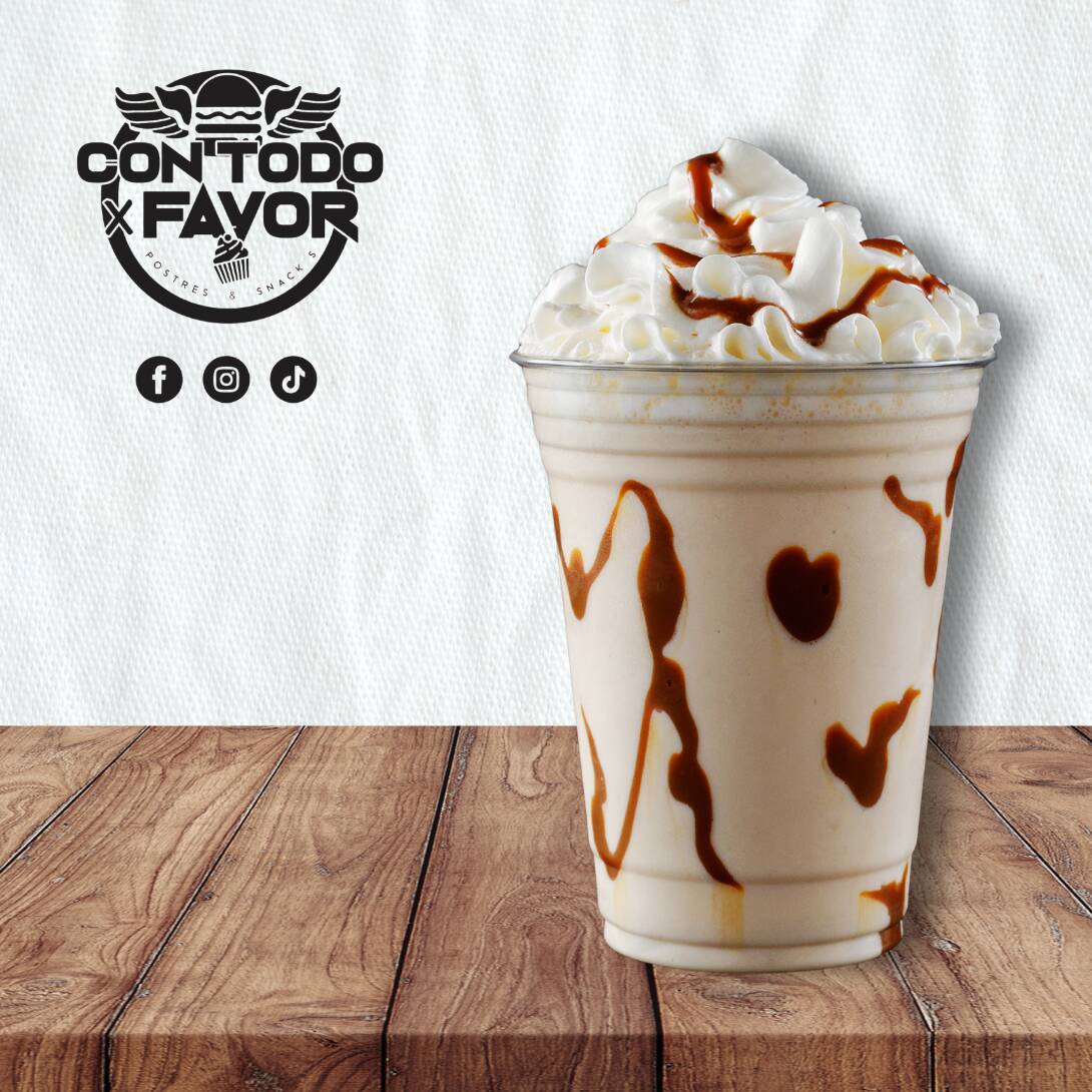 Frappe sabor cajeta con crema batida y granillo