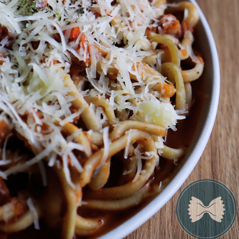 Porción individual, Nuestra deliciosa pasta fresca, bolognesa de carne de res, y queso parmesano... te encantará