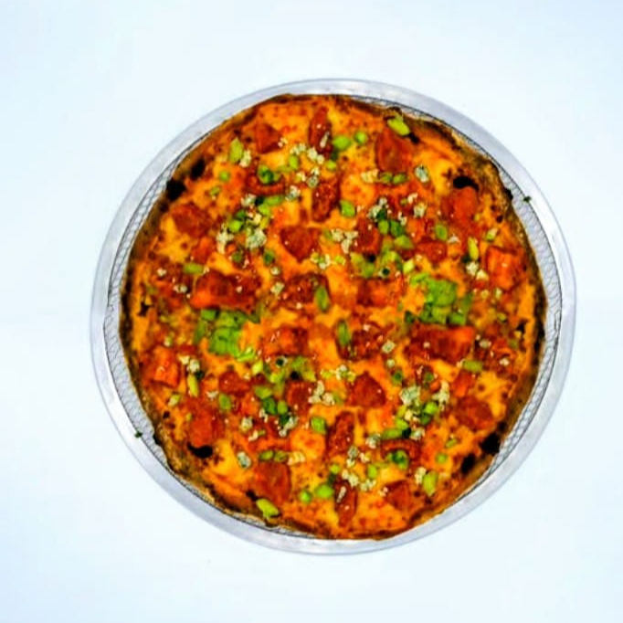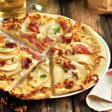 Salsa de tomate, queso mozzarella, PERA, queso azul, tocino, nuez garapiñada y un delicioso toque de miel