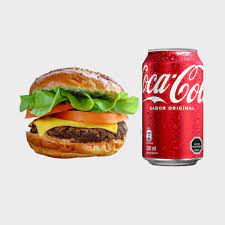 Hamburguesa con 120gr de carne, lechuga, jitomate y cebolla + Refresco