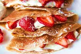 Tres crepas de queso philadelphia y jalea de zarzamora.