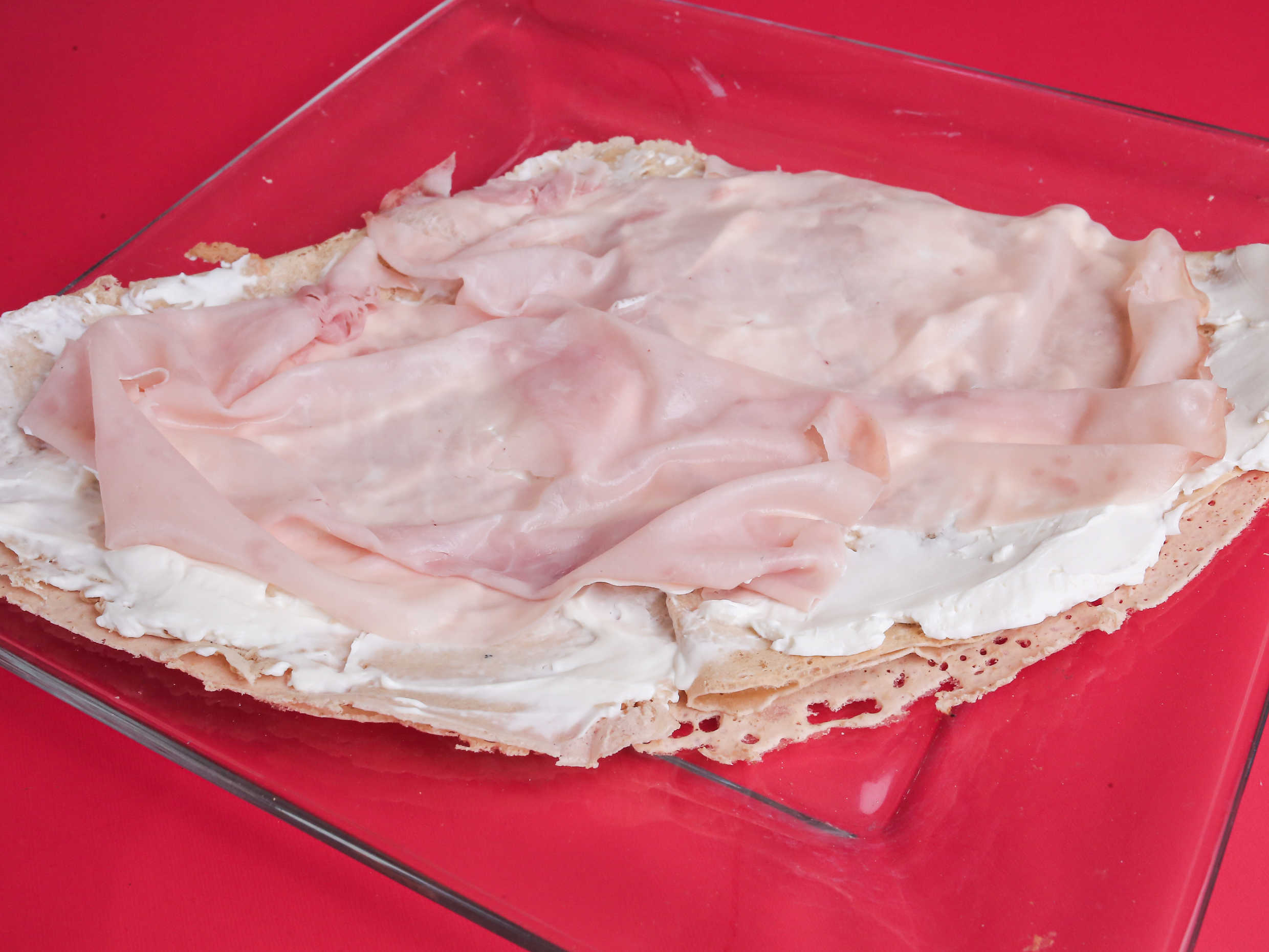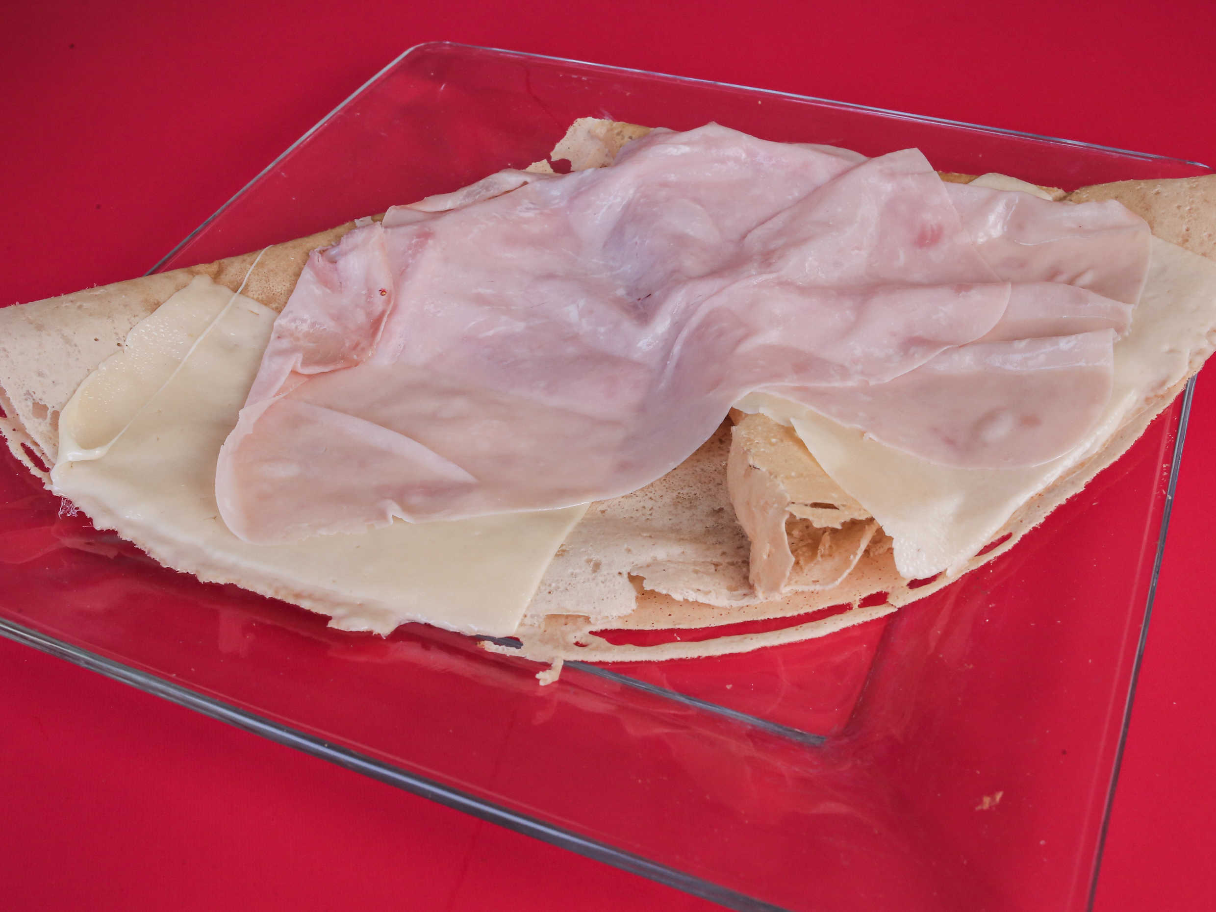 Rellena de queso crema Philadelphia, una rebanada de manchego fundido y dos rebanadas de jamón, pimienta, picante al gusto