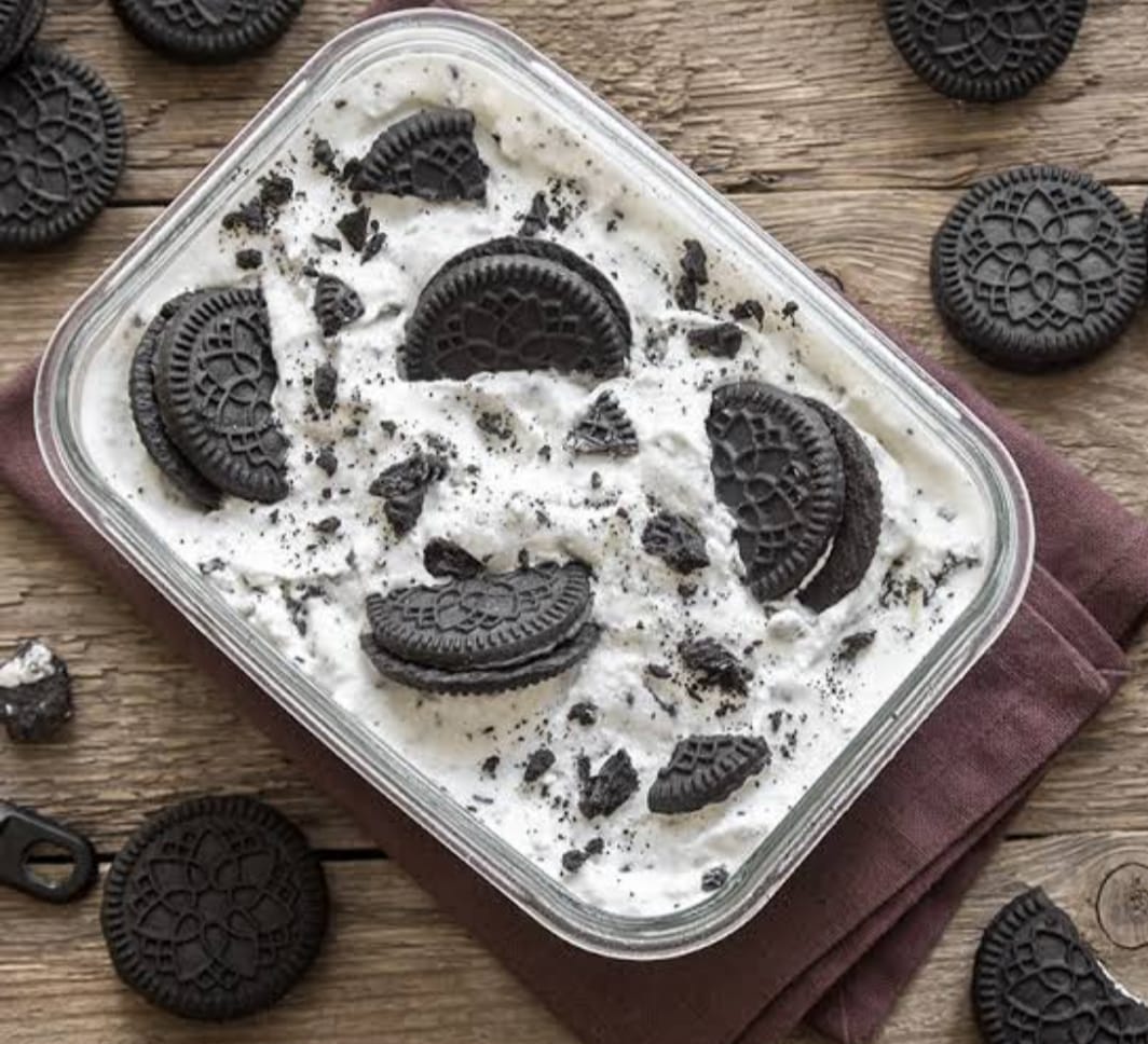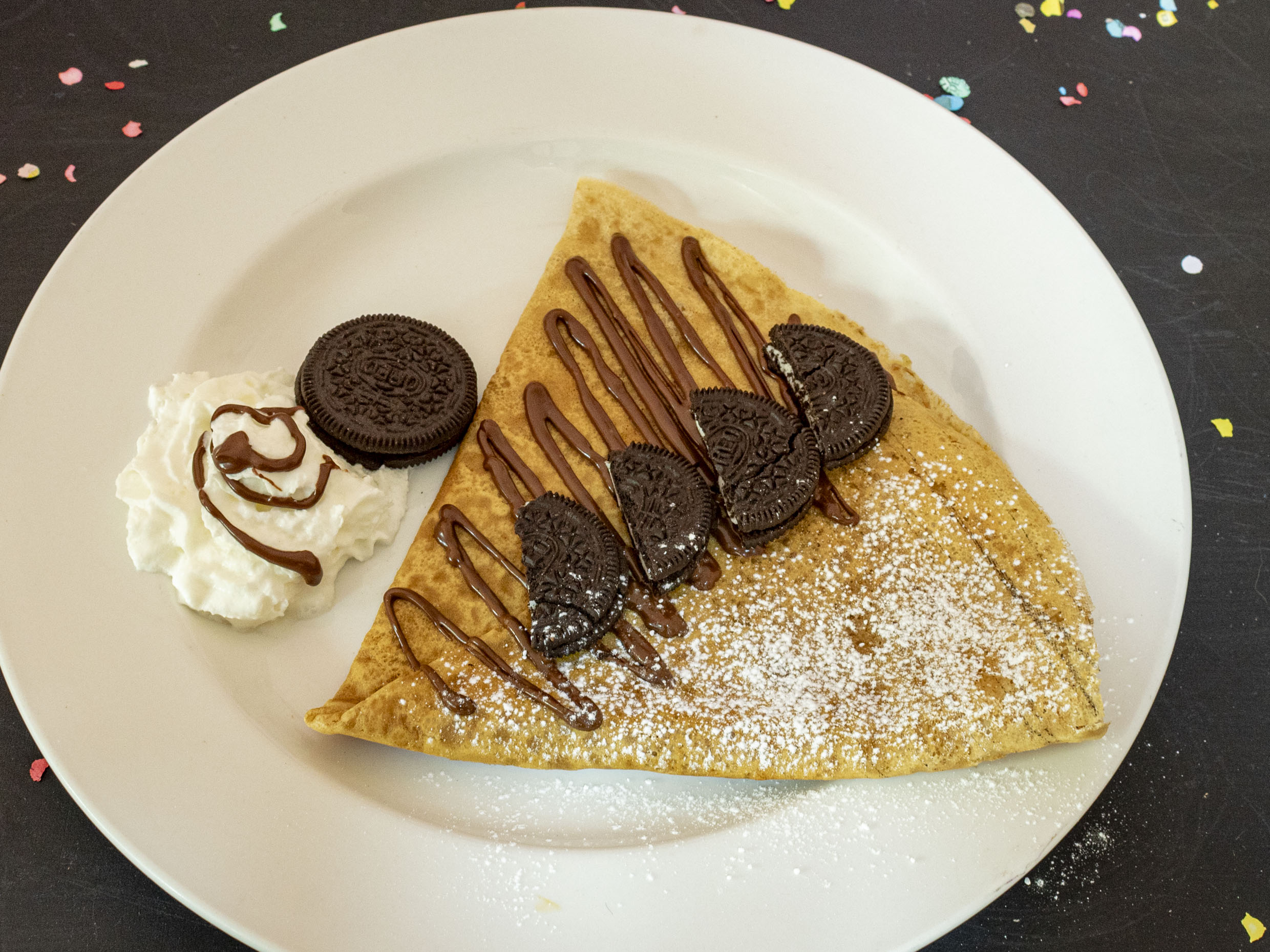 Rellena de Nutella, galletas oreo troceadas, crema batida y un toque e lechera