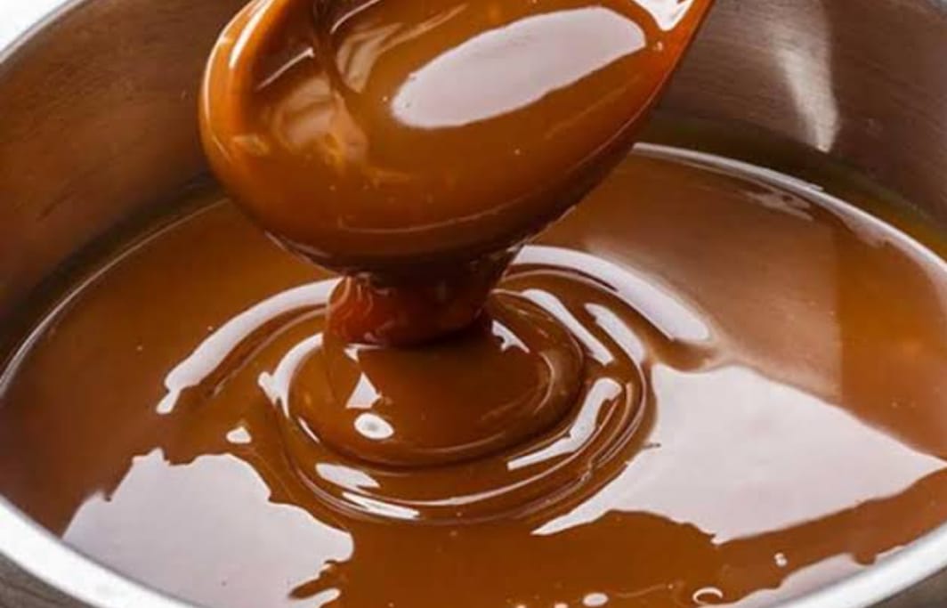 Rellena de queso crema Philadelphia, duraznos en almíbar rebanados y lechera