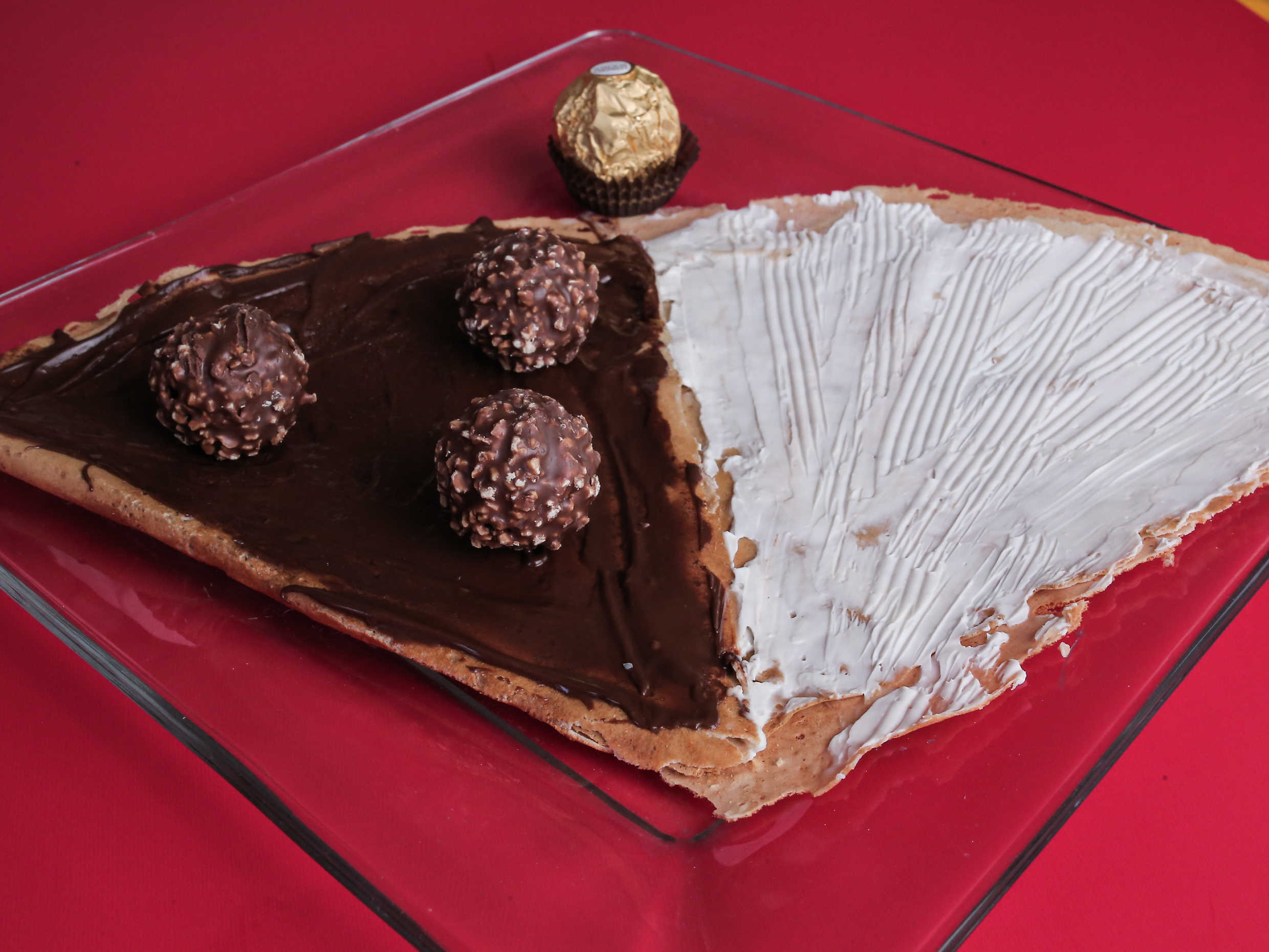 Rellena de queso crema Philadelphia, Nutella y 3 Ferreros troceados