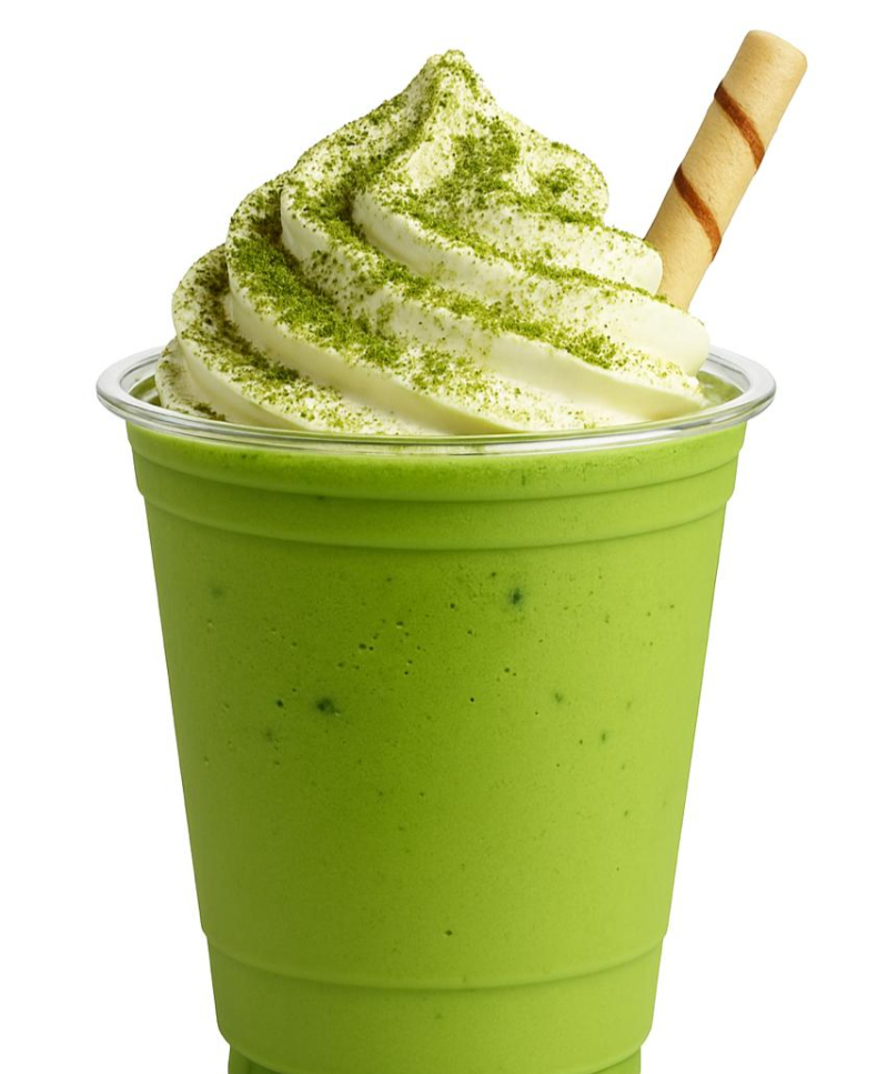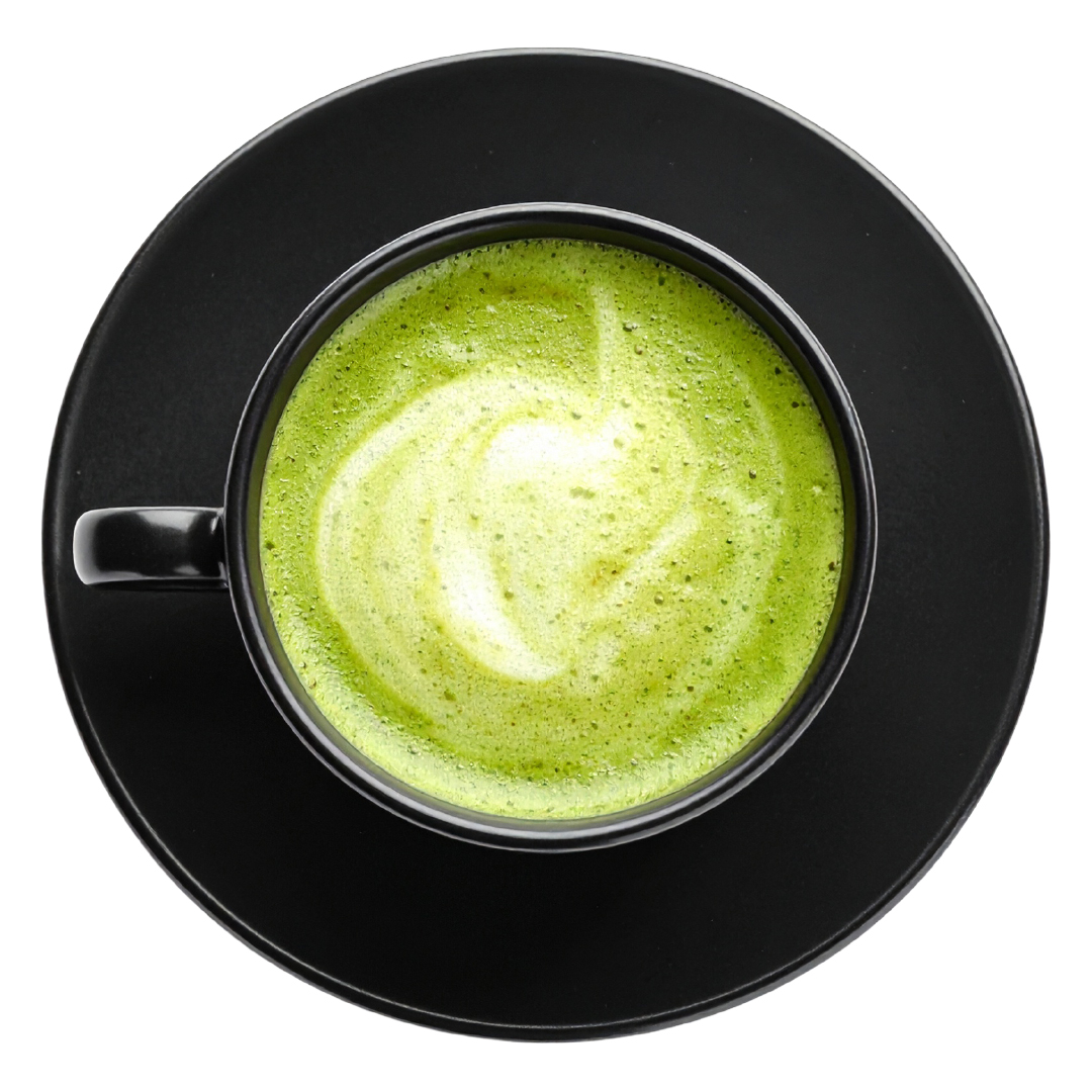Té verde japonés premium batido con leche, ofreciendo un sabor herbal y reconfortante.
