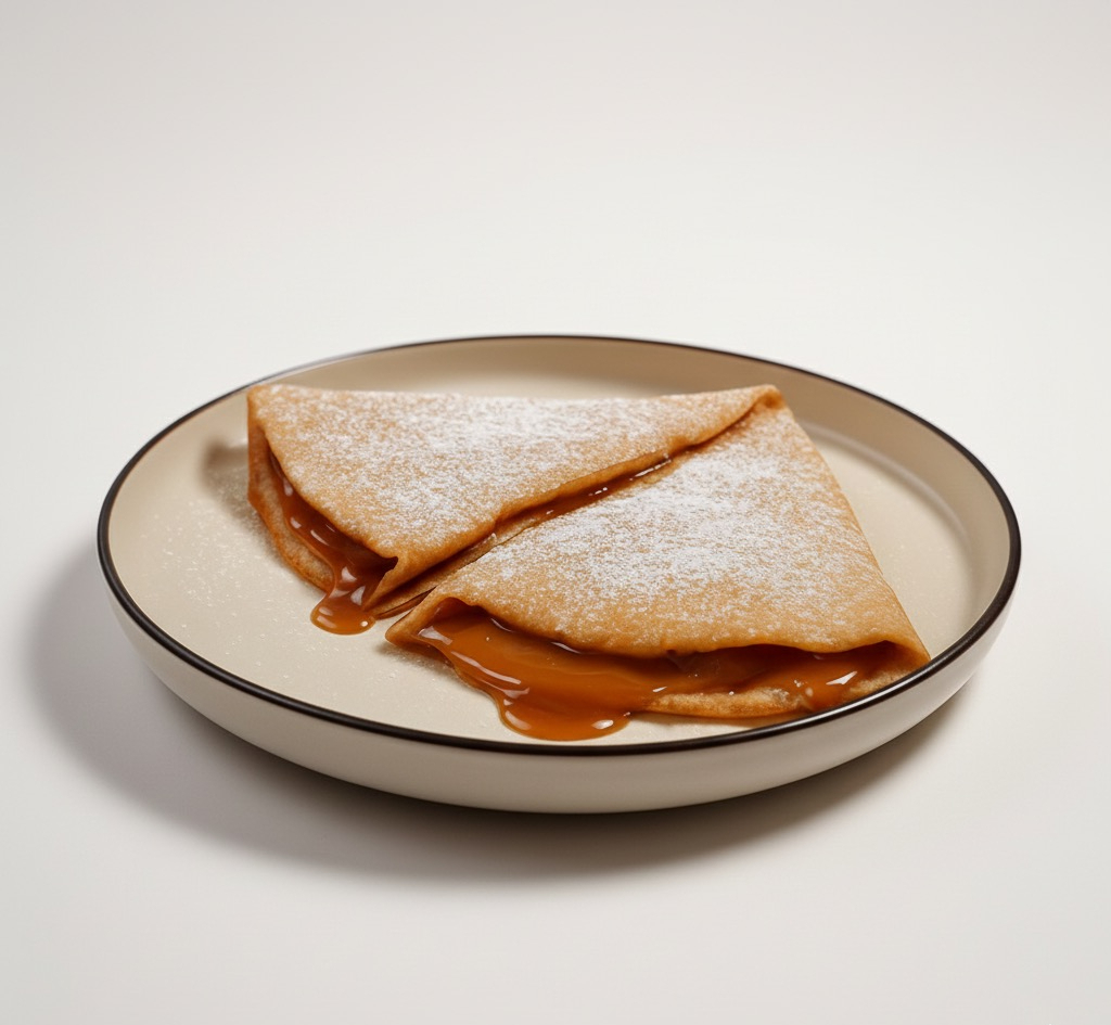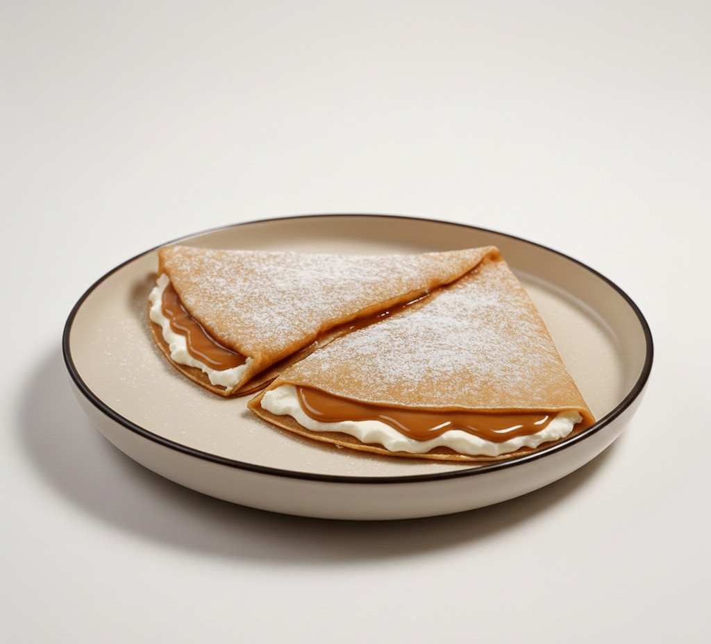 Crepa tradicional rellena de dulce de leche de cabra tipo cajeta.