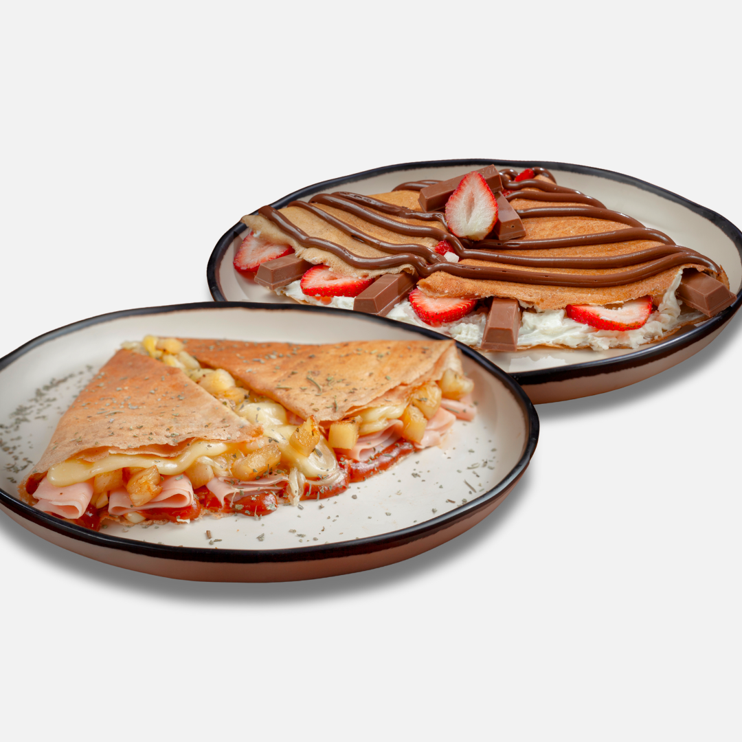 1 Crepa especial salada mas 1 crepa especial dulce.
