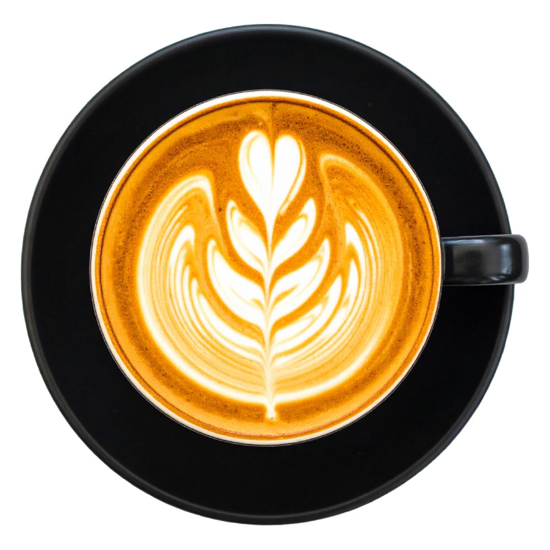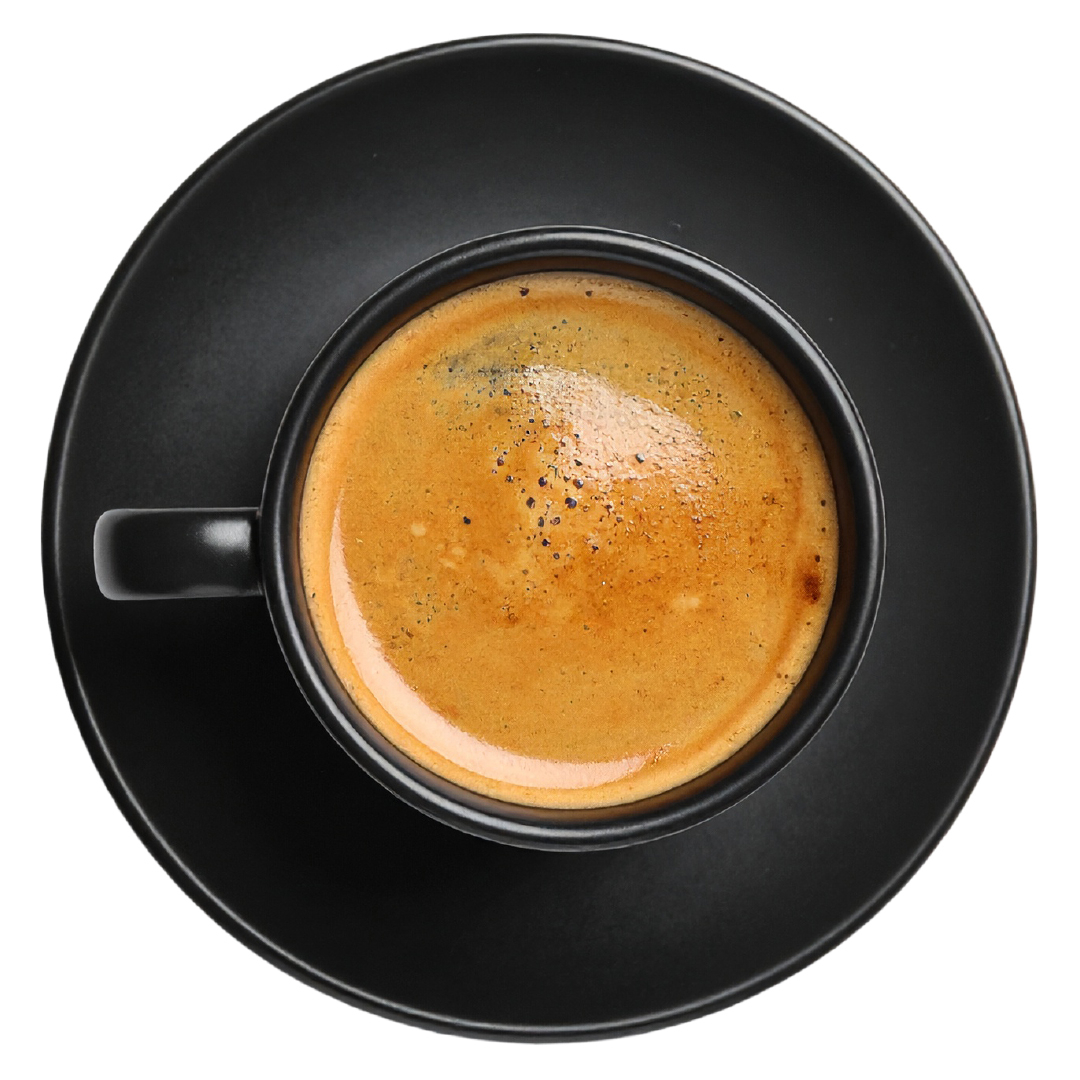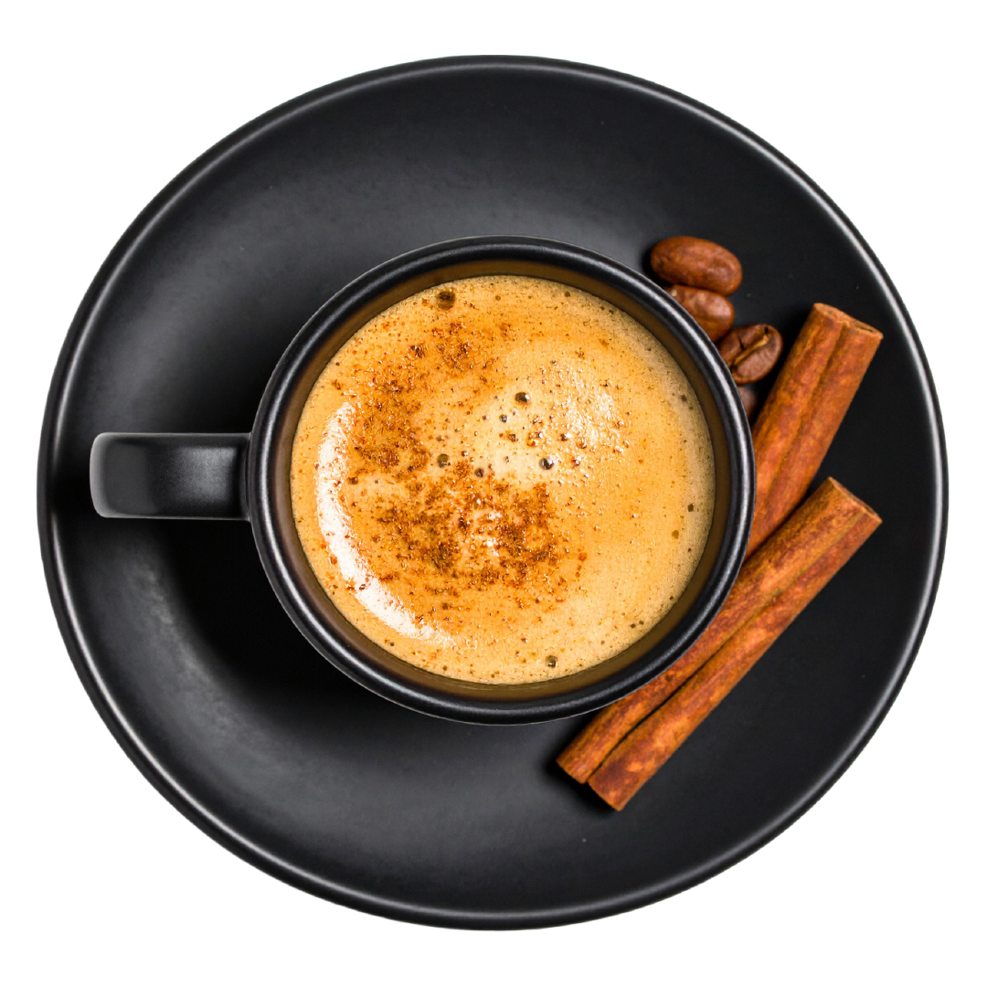 Café espresso con una fina capa de leche vaporizada de textura sedosa y aterciopelada.