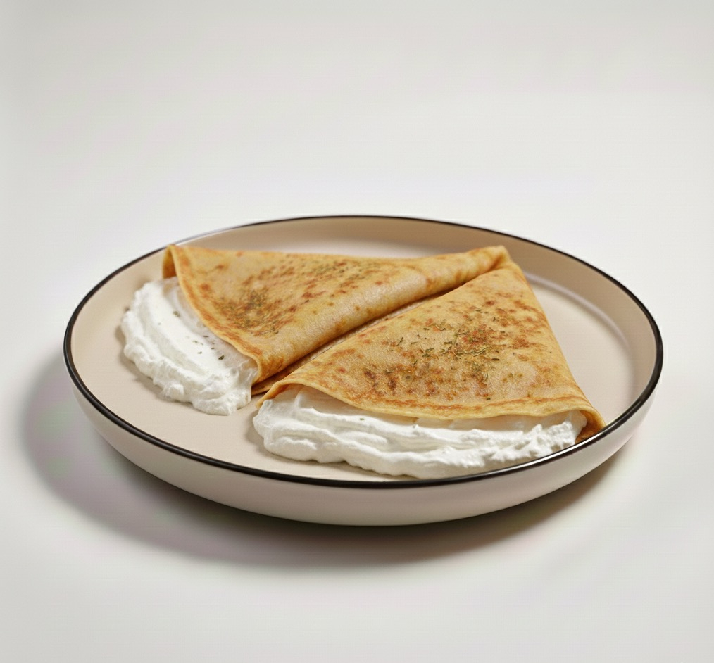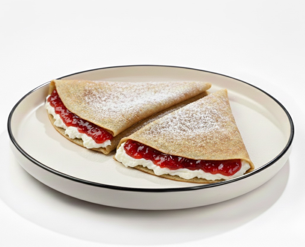 Crepa suave rellena únicamente de queso crema Philadelphia.