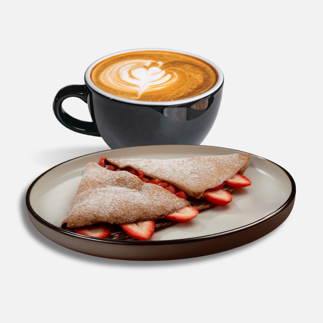 Nuestra crepa más completa con Nutella, fresas y queso crema.