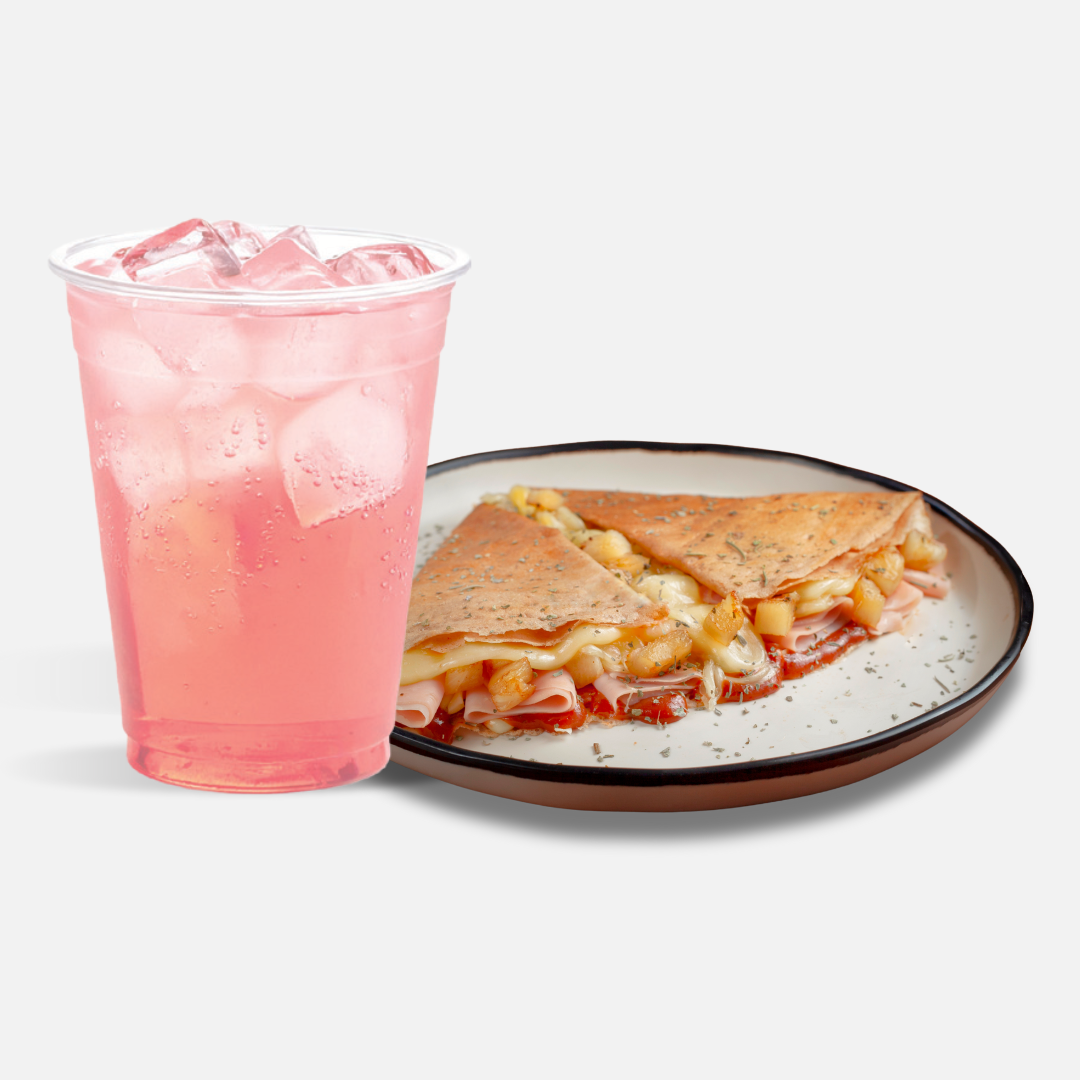Refrescante mezcla de agua mineralizada con jarabe frutal a elegir.