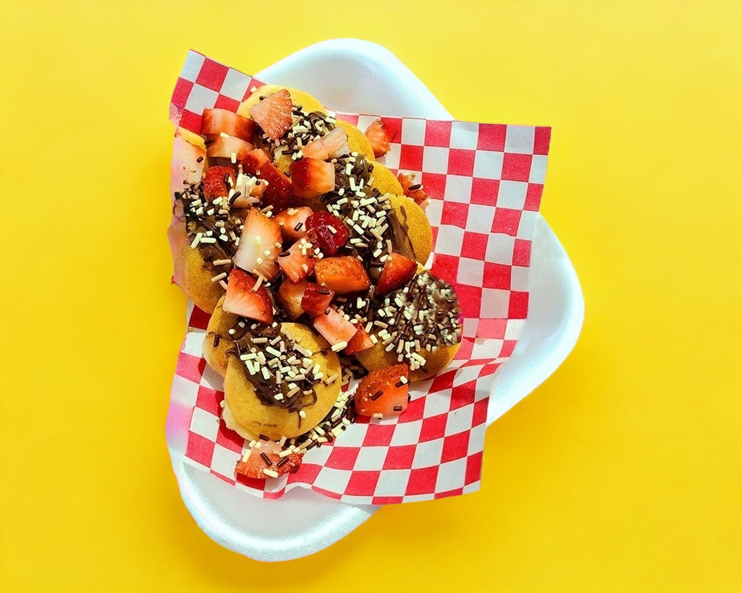 Deliciosos mini Waffles acompañados por 2 aderezos y 2 toppings