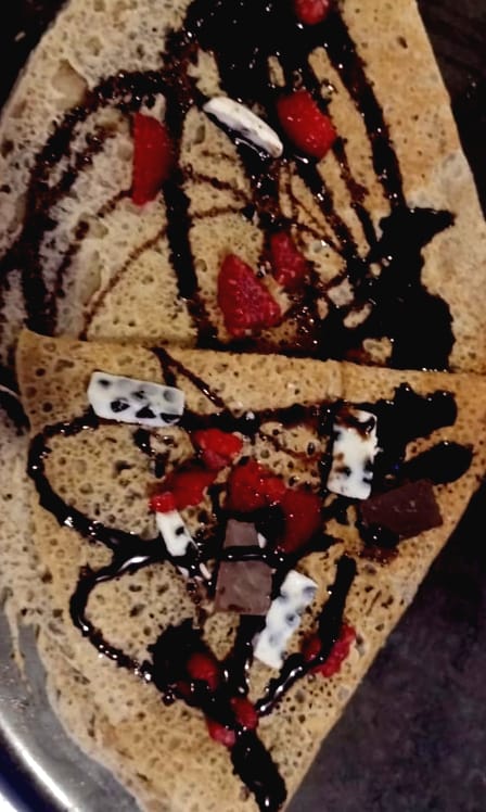 Base de Nutella, nuez, fresa natural y trozos de Ferrero.