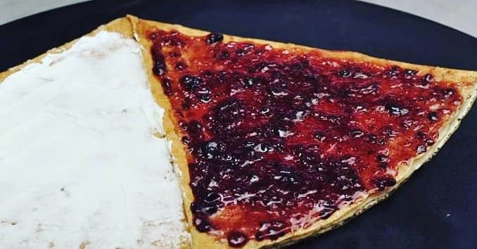 Base de Mermelada de fresa, chocolate Herseys y trozos de Gansito.