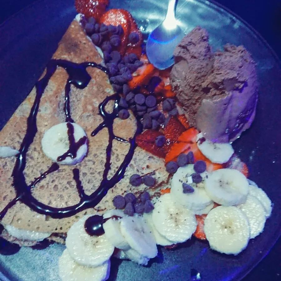 Base de Philadelphia, Nutella, Plátano y Fresa Natural, Bola de helado y chispas de chocolate.