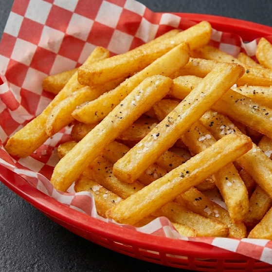Papas a la francesa con corte recto grueso sazonadas.