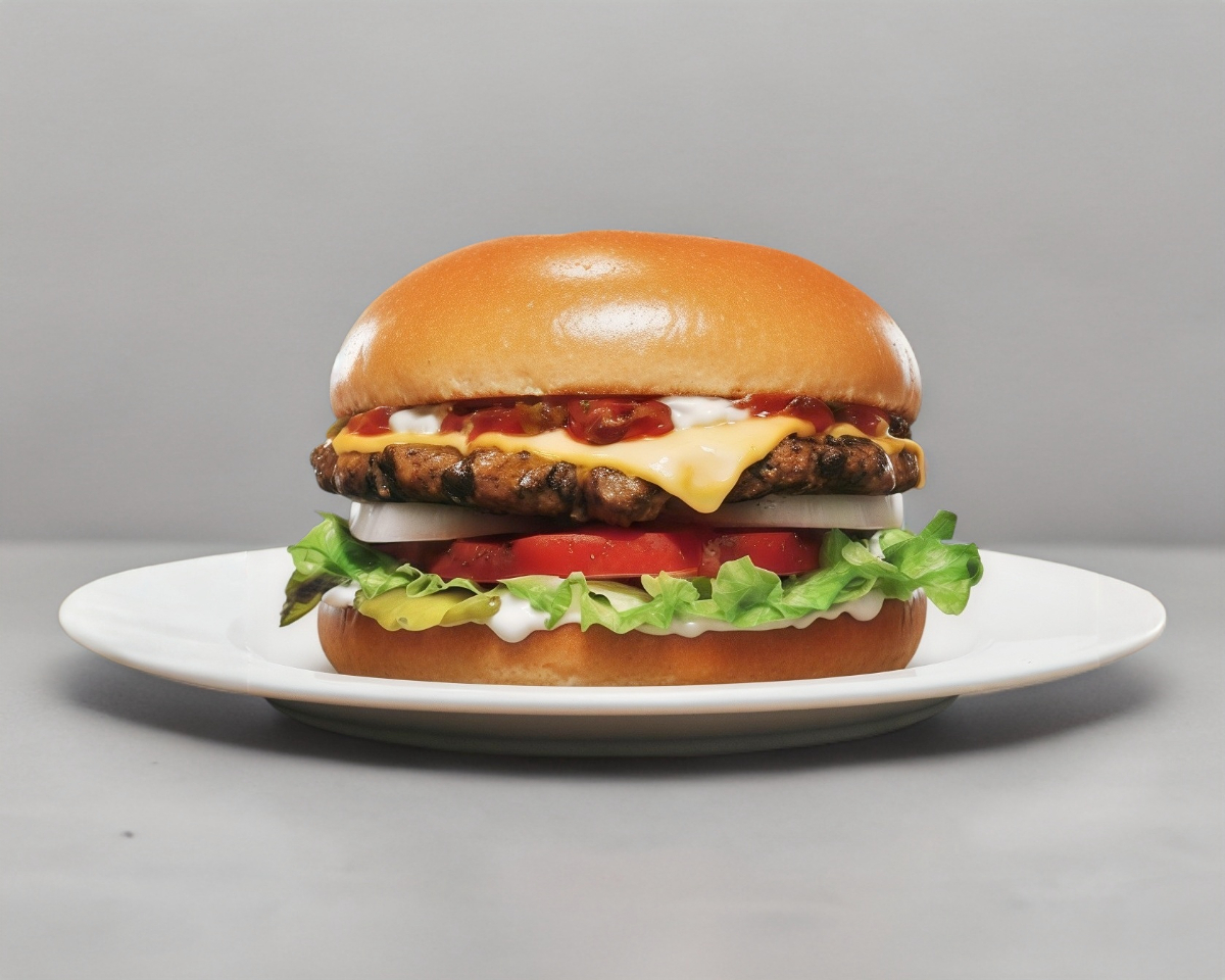 Hamburguesa con lechuga, jitomate cebolla, queso americano y queso manchego,carne de res, tocino y quesillo catsup y mostaza