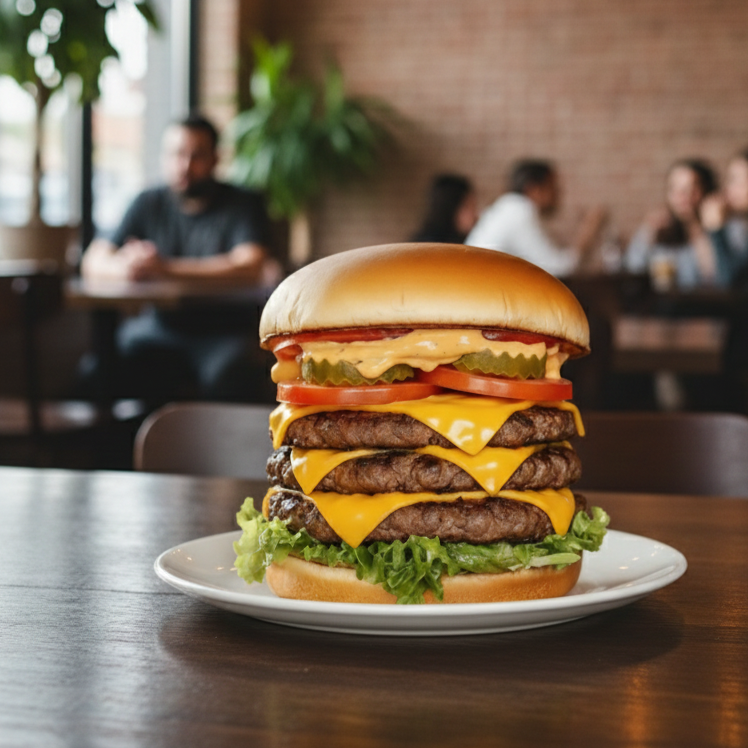 Si tienes apetito de leyenda y crees que puedes con el reto, prepárate para conquistar nuestra torre de tres pisos de pura carne y sabor; la única hamburguesa que te pide permiso para entrar, complementada con nuestros aderezos y vegetales para tu paladar