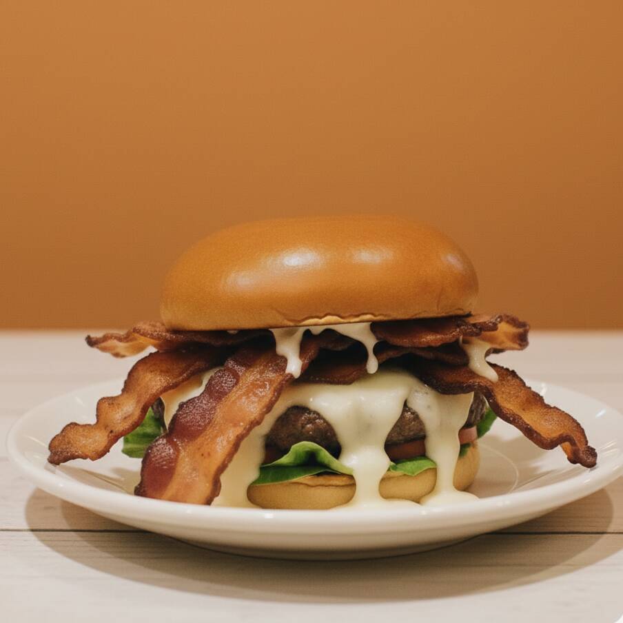 Lo crujiente y lo sabroso esta en nuestra hamburguesa con nuestro tocino ahumado combinado con el queso oaxaca hace que te exploten las mejillas del sabor intenso complementada con nuestra carne de res bachoco y bimbollo bimbollo adicionando nuestros vegetales y aderezos a tu gusto