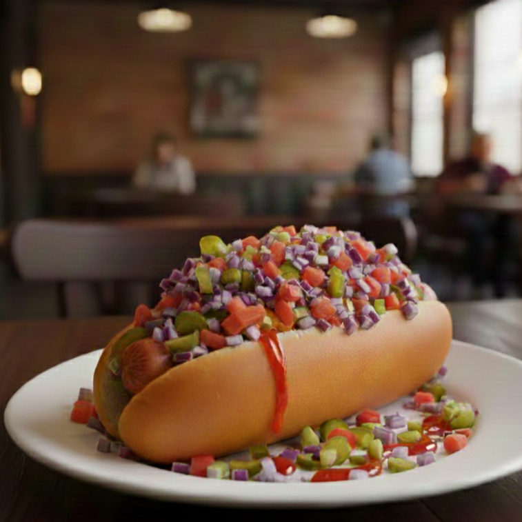 crujiente y sabroso y con nuestro queso oaxaca un manjar de sabor directo a tu paladar combinando los vegetales y aderezos en tu jotdog con salchicha de pavo